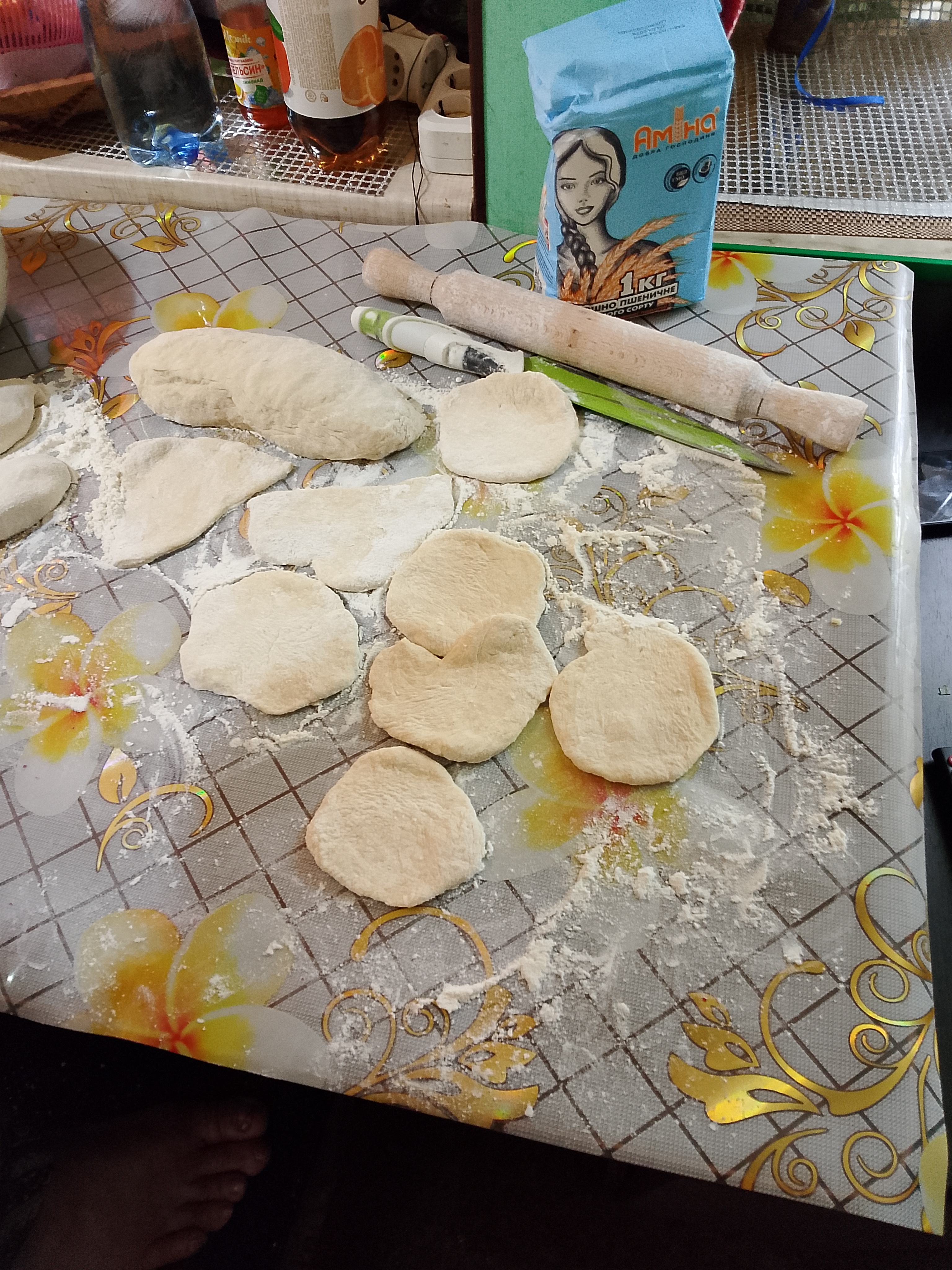 Замісила м'яке тісто і залишила на пів години для підйому. Потім ще трошки обм'яла і почала ліпити.