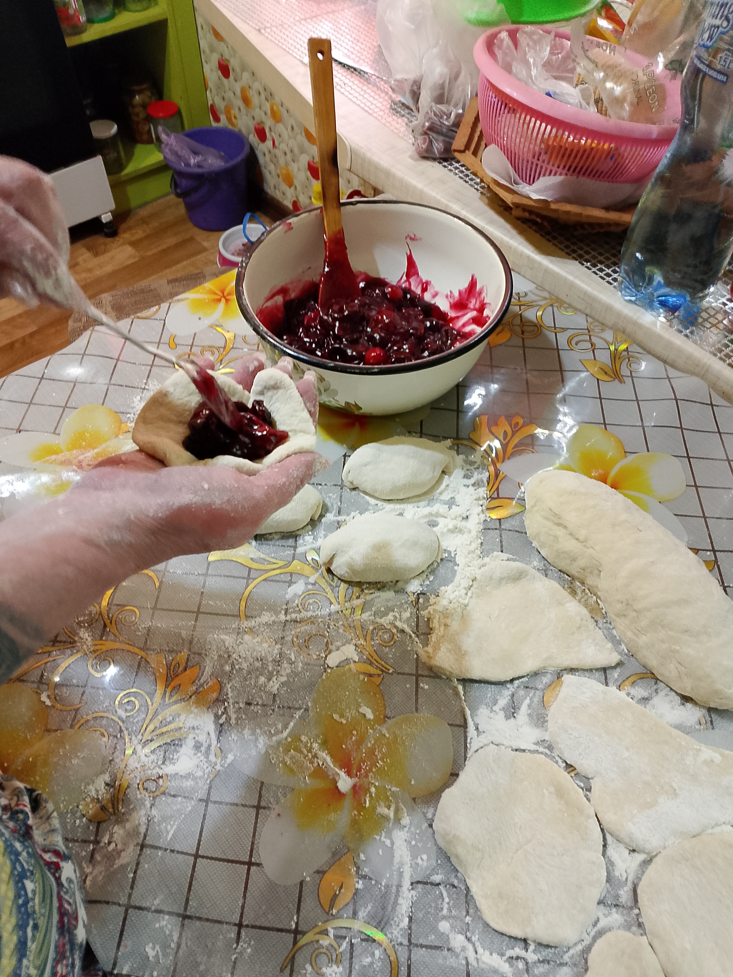 Коли об'явили штормове попередження, вітер трохи не вириває дерева з корінням, а злива падає з неба з такою щільністю, що не видно за метр, грім нереально гучний з дуже довгими розкатами - необхідно себе чимось побалувати. Ну от хоча б піріжки з черешнею.