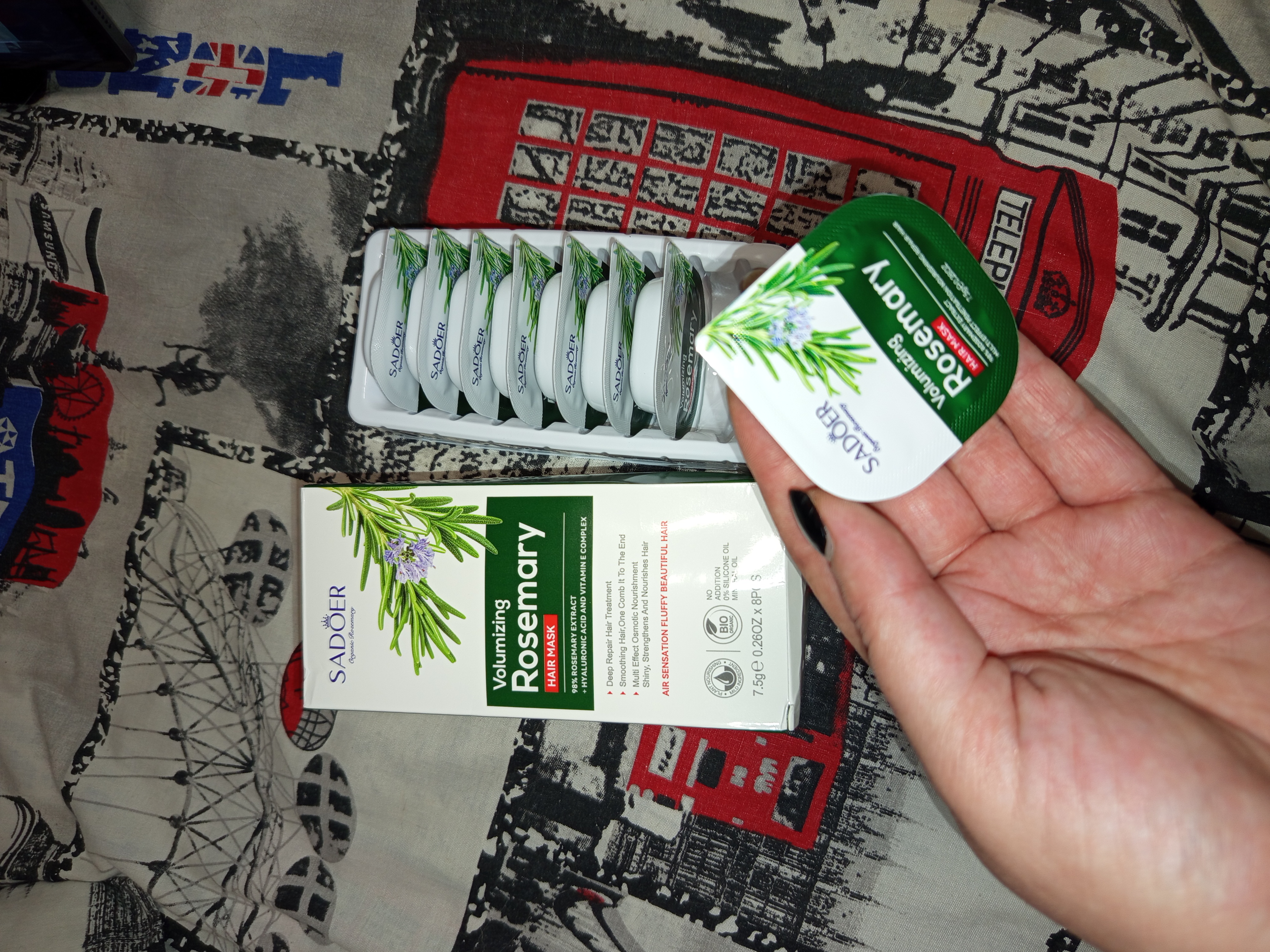 Також замовила маску для волосся з екстрактом розмарину. Ніколи не користуюсь масками для волосся тому що... Ну чомусь тому, не можу пояснити чому. А це щось переклинило та вирішила взяти на пробу, тим паче тут не ціла банка півлітра чи літр, а в грамовках. Дуже зручно що маска в індивідуальній упаковці, 8 капсул. От якраз спробую, якщо сподобається куплю ще.