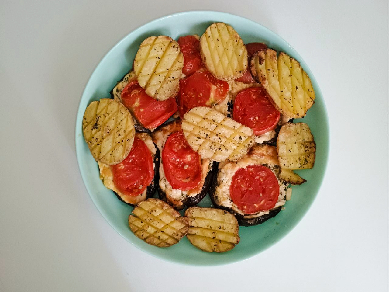Картопля з баклажанами виглядає ну дуже смачно 😍 А як ти їх готувала? Якась спеціальна решітка чи то в духовці?
