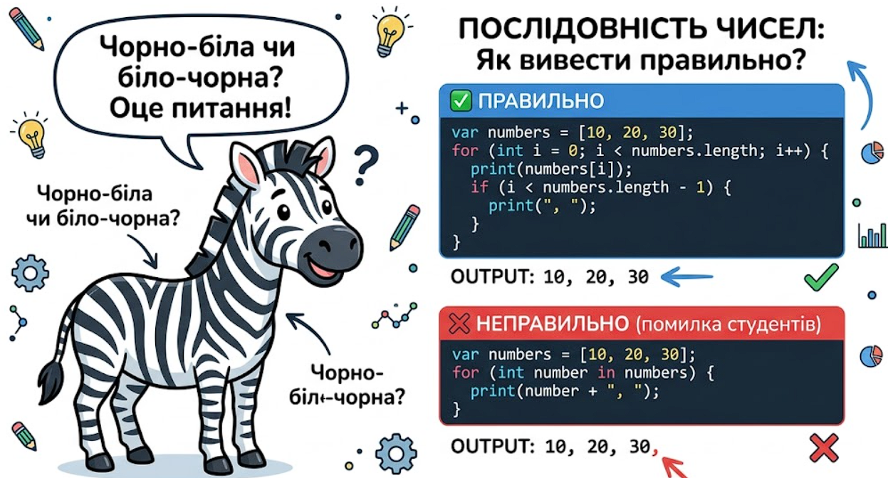 Задача. Просто вивести послідовність чисел, ні не просто а через кому... і нехай зебра допоможе