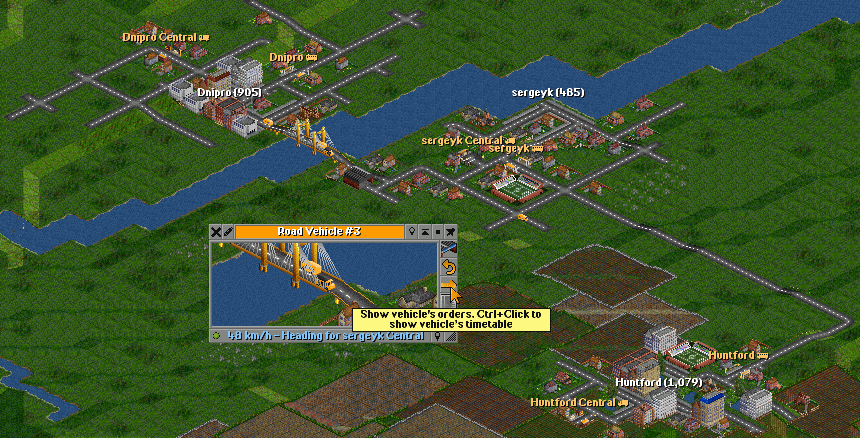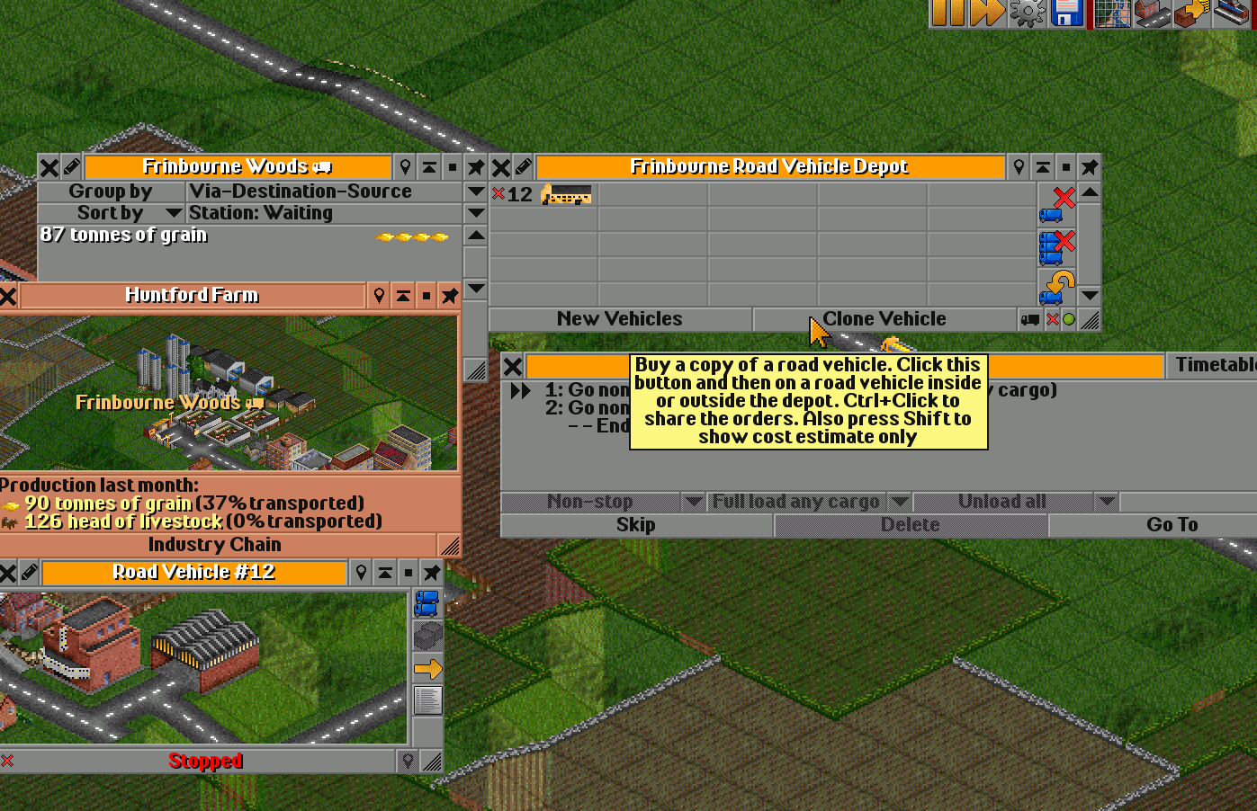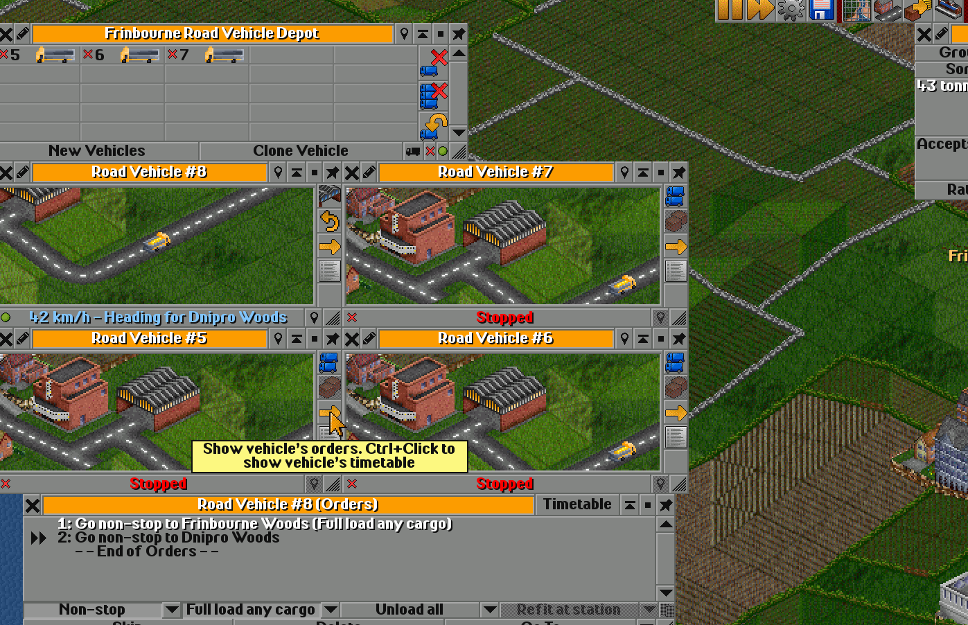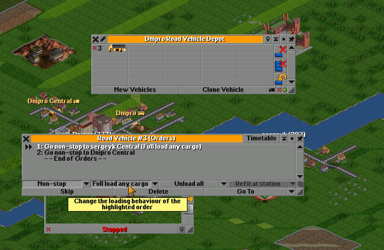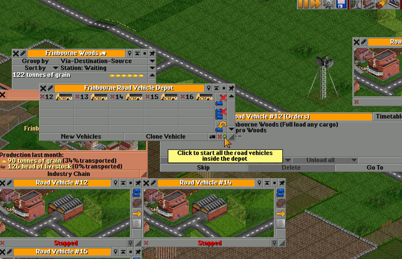 Here I’ve caught a truck, clicked on it with the mouse, and now I’ll press the orange arrow to open the Orders window.