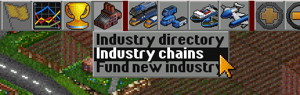 Between the Company League Table button and the Trains button, there’s the Industries button — I click it and select Production Chains.