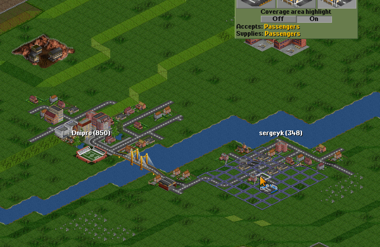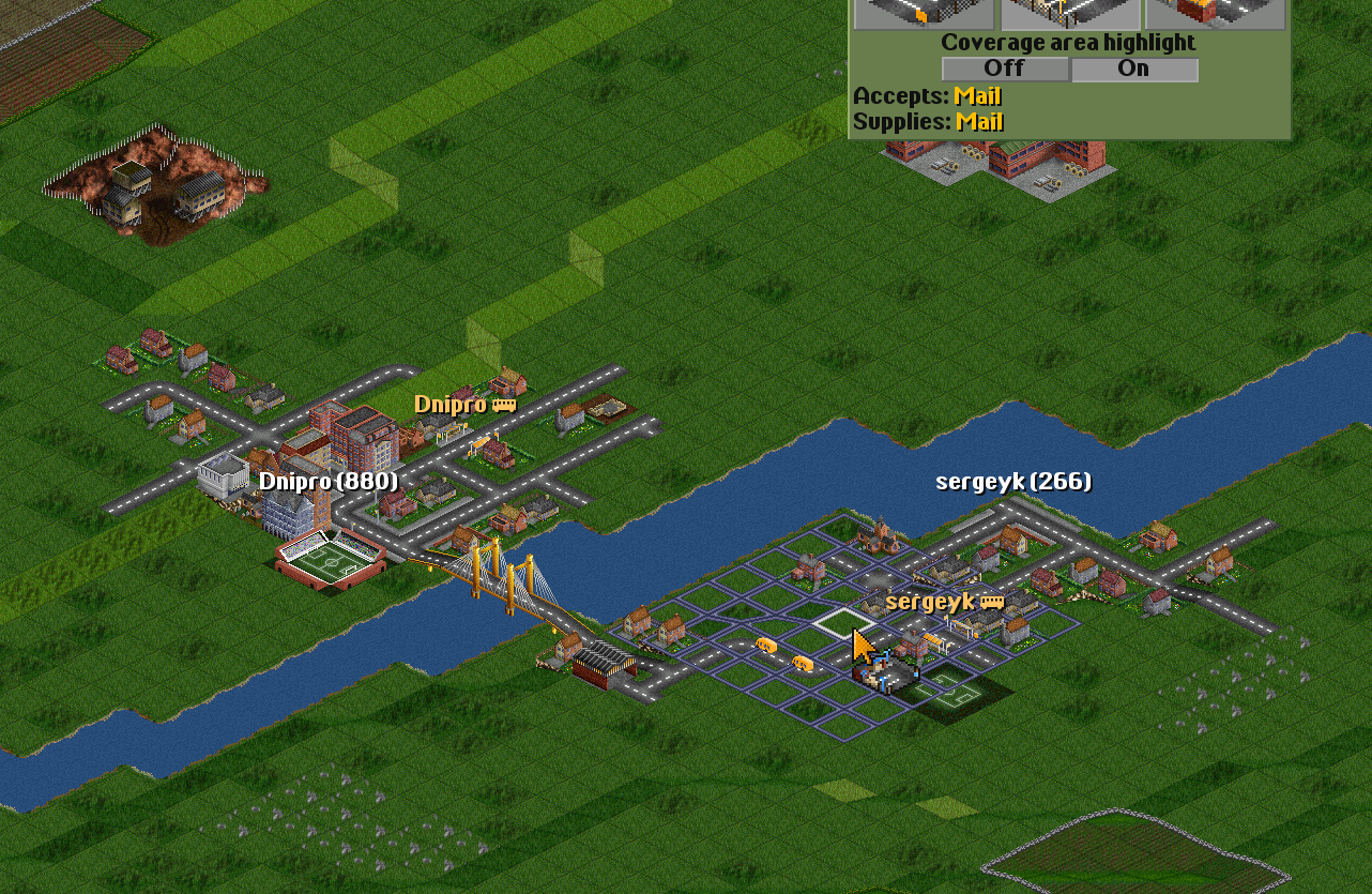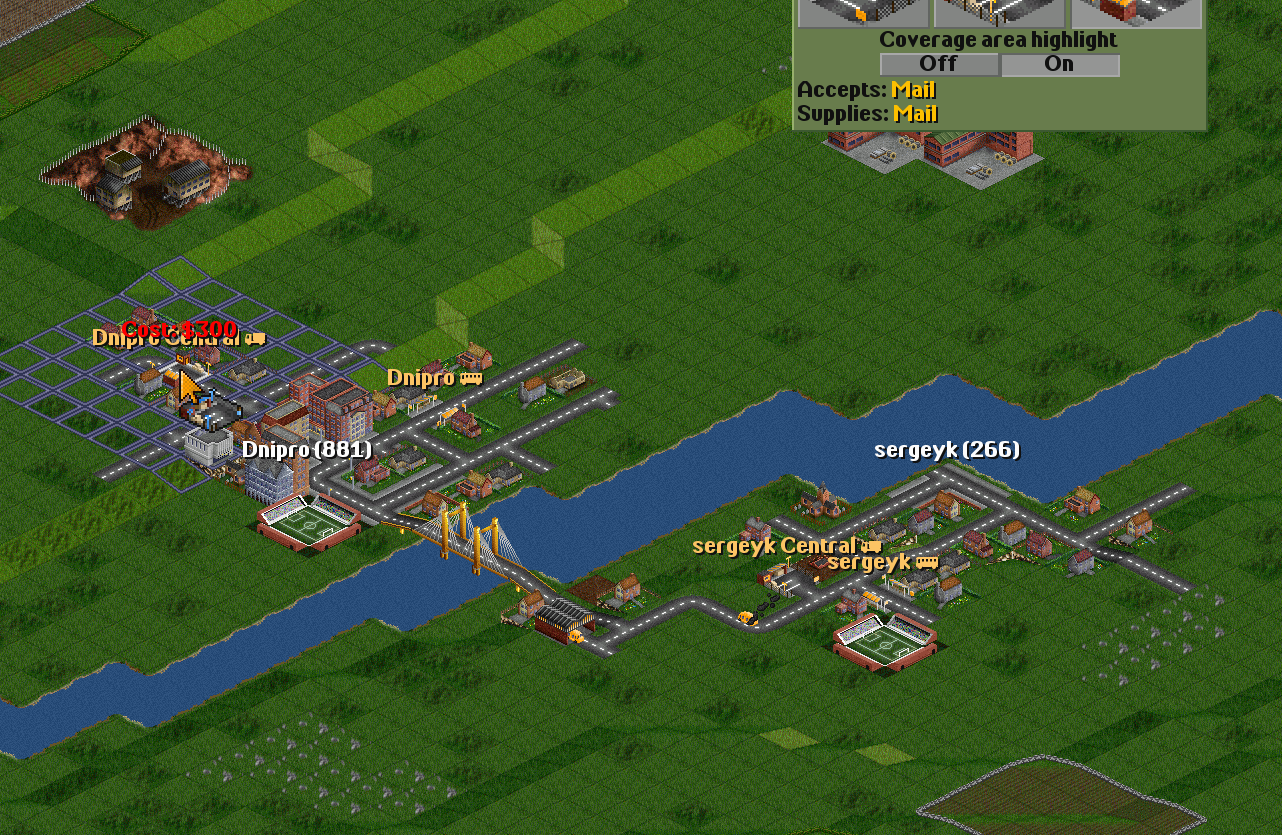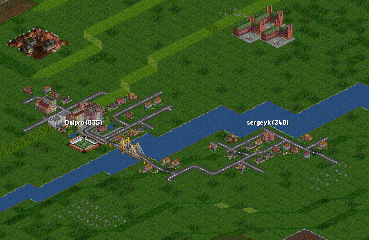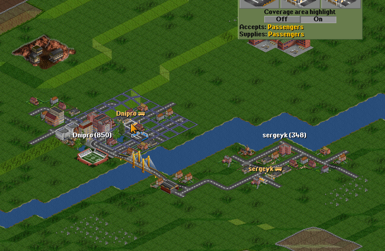 | I have two towns: Dnipro(835) Sergeyk(348) | I will connect them with a road. |