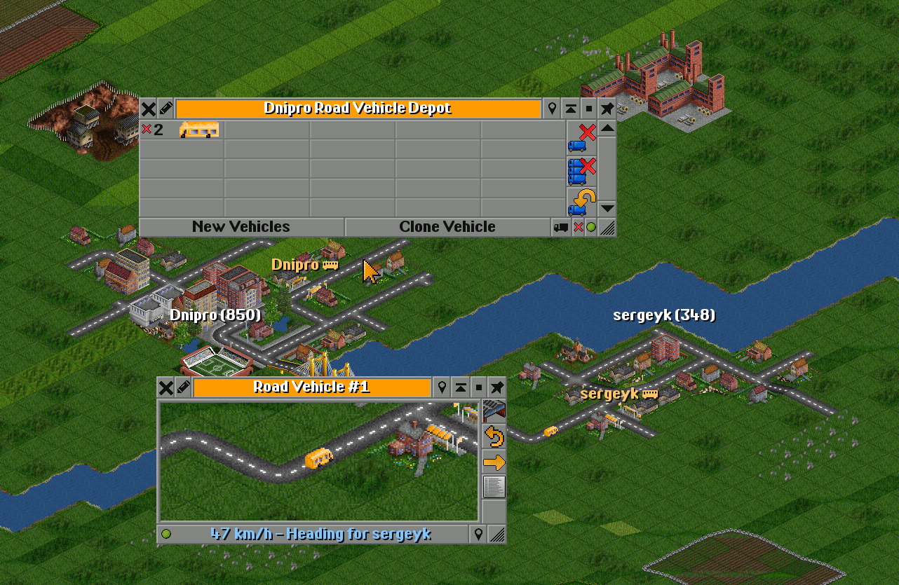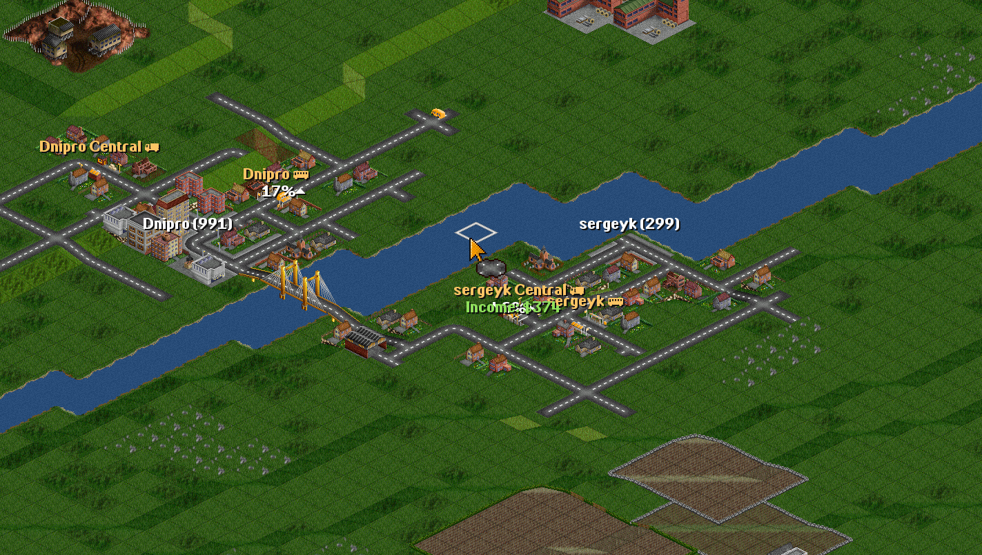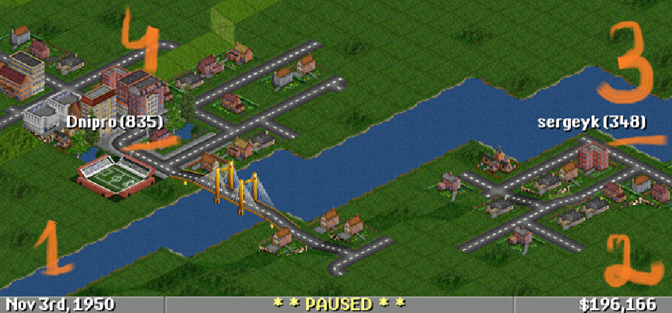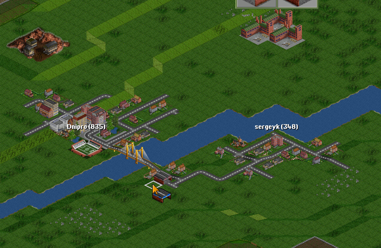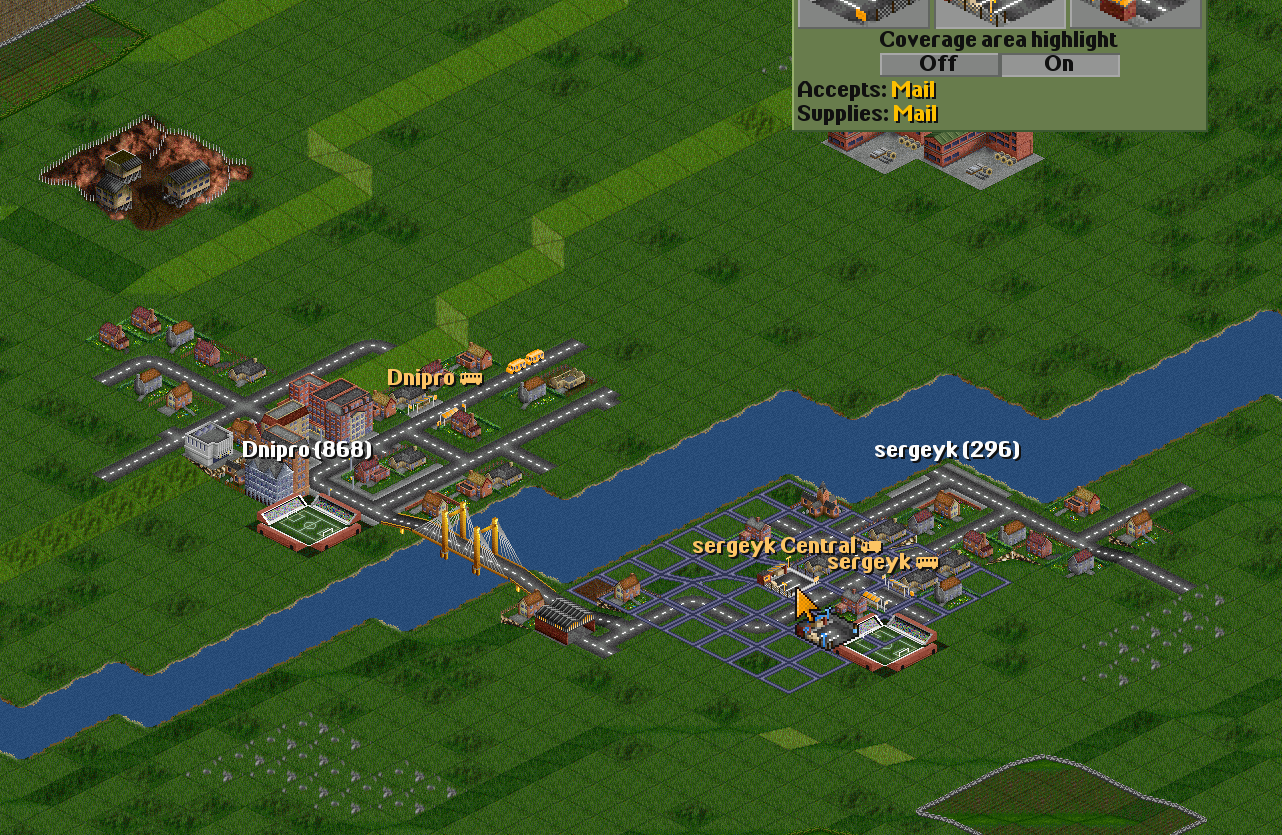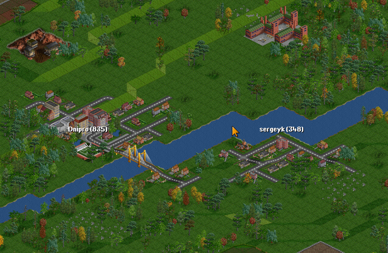 | I have two towns: Dnipro(835) Sergeyk(348) | I will connect them with a road. |