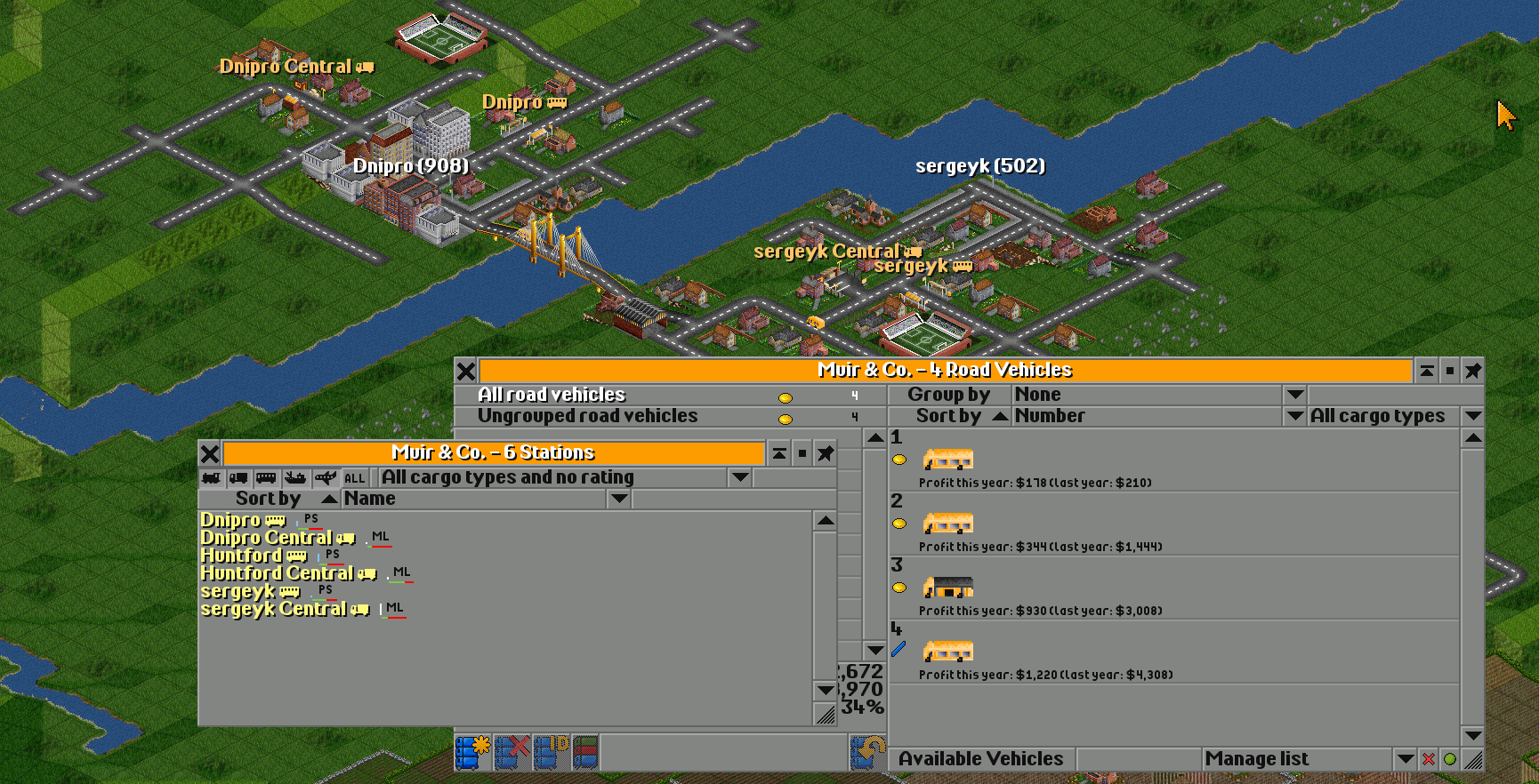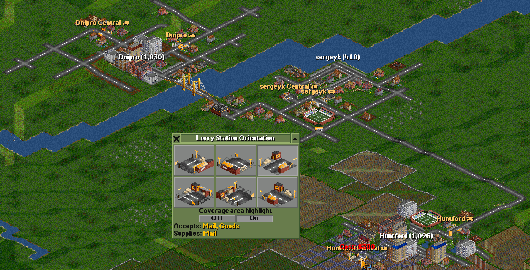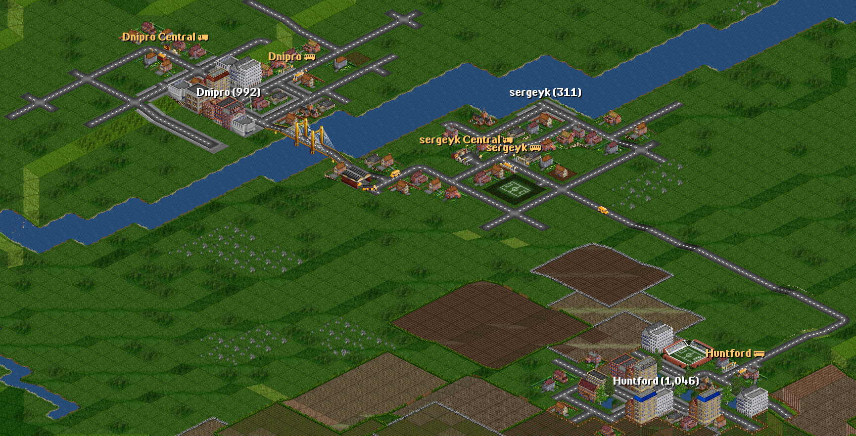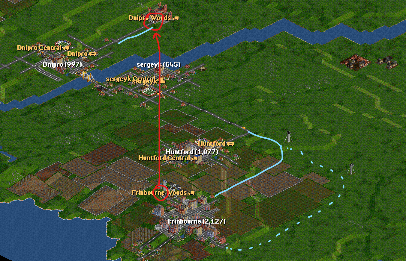 | I have two towns: Dnipro(835) Sergeyk(348) | I will connect them with a road. |