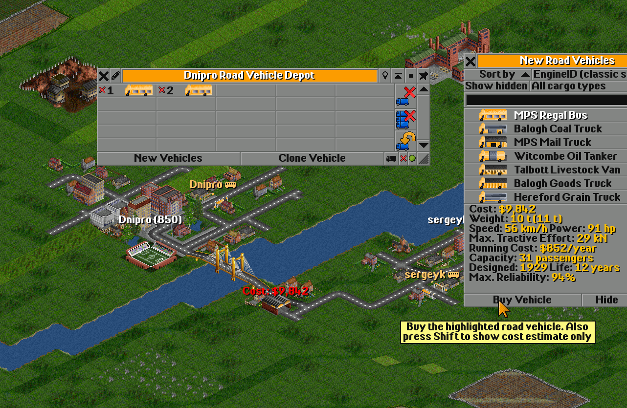 Pressing the Buy Vehicle button or double-clicking on a bus buys the bus.