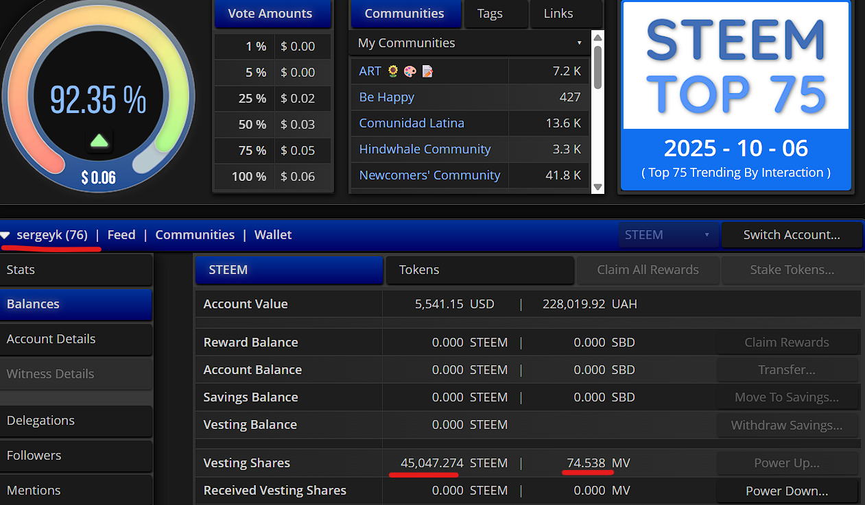 Як бачите у мене майже 75 MV а для ORCA треба 100 MV, проста математична пропорція каже що ORCA буде при 60000 STEEM