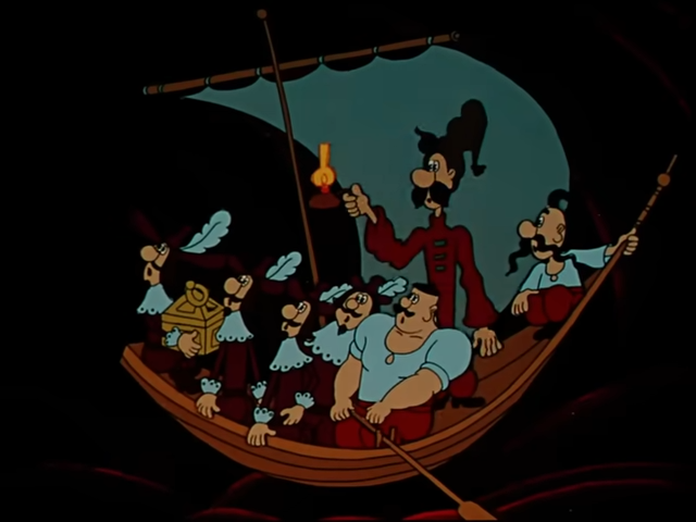 | козаки придумали переодягтися піратами | і визволити жінок від піратів |