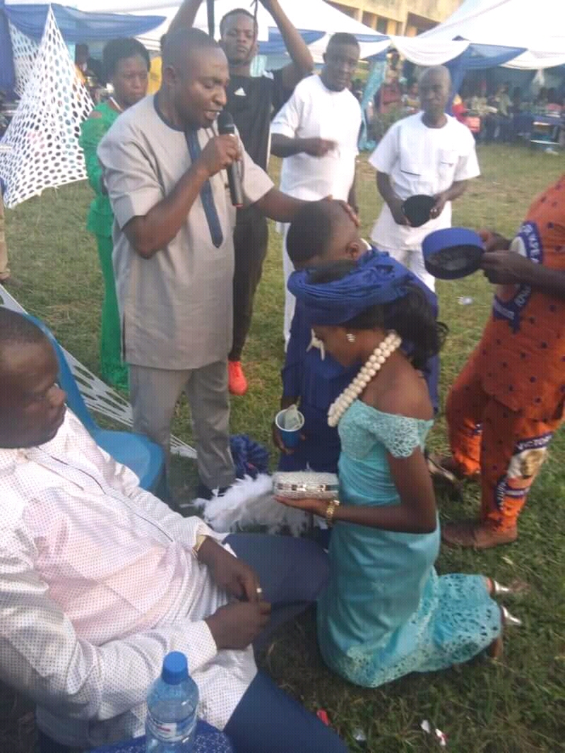After selling so she went inzide the house again to change her cloths to come look for her husband also this is also a another part of the traditional culture to look dor your husband in the audience sometims I do ask myself what is the need of that when they already know your husband but it's composry and nessary to do it. After looking for her husband she will take him to the elthes to bless their marriage. Igbo culture is a very collated one