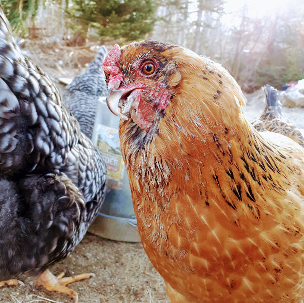 As she grew up she started to look different from the others, her coat looked almost leopard print and her beak started to crisscross. She had a scissor beak that looked so goofy, and the most gorgeous plumage I had ever seen on a chicken. She had a beard for awhile, but always made such a mess eating that all her beard fluff fell out from the weight of dried on food.