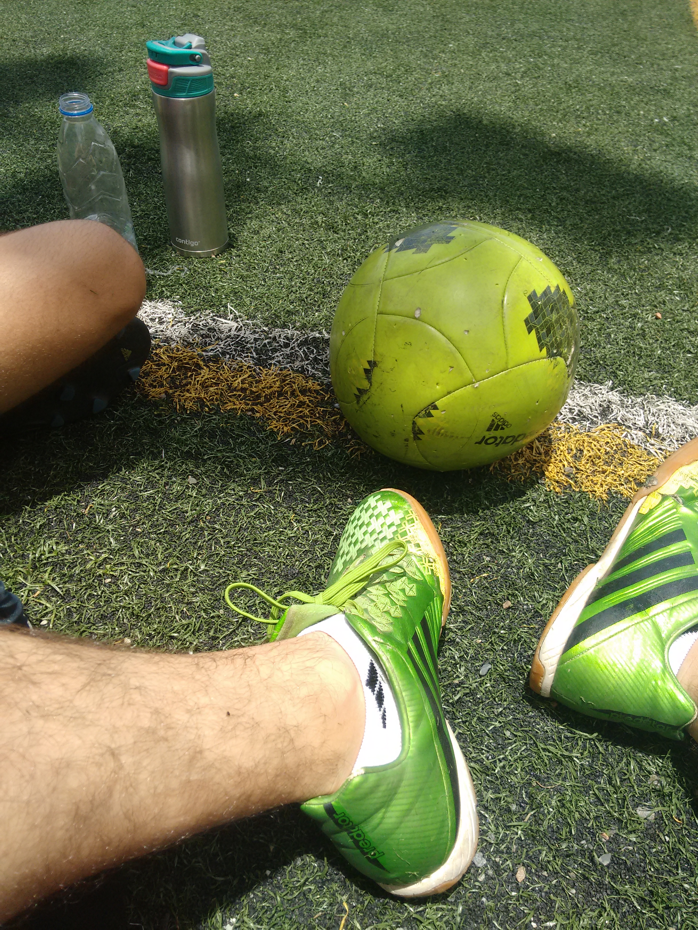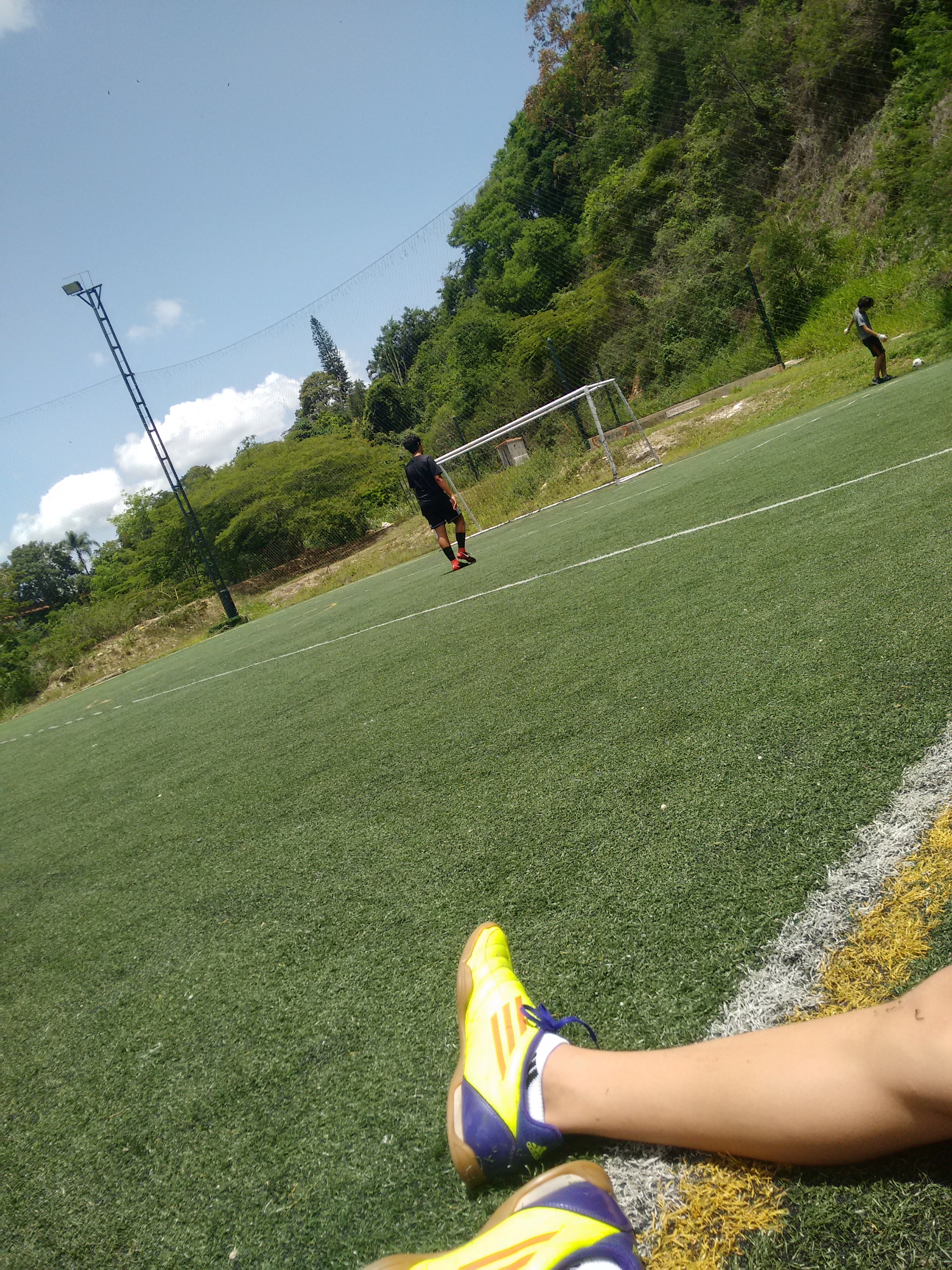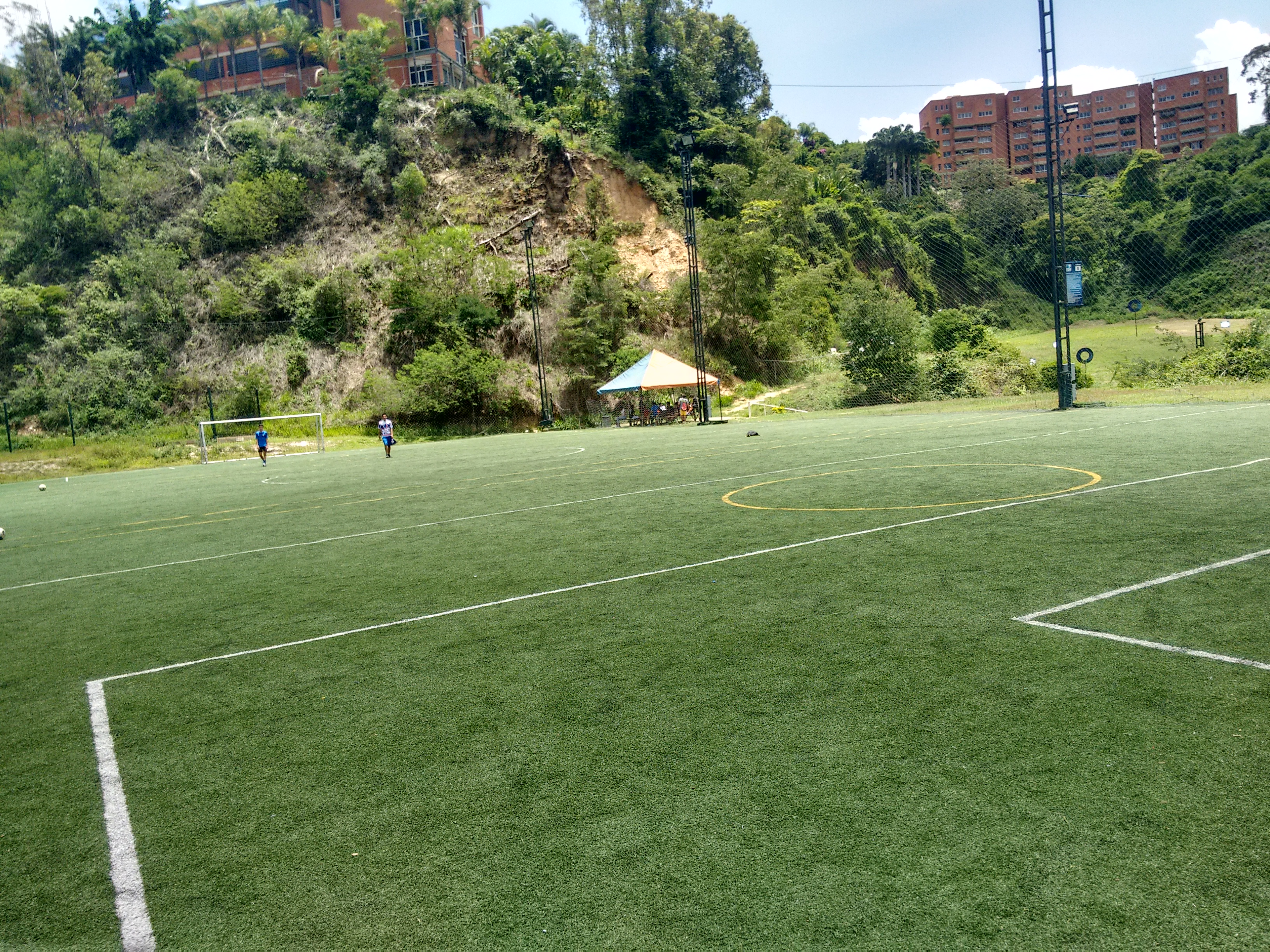 Jugamos en una cancha algo mediana, supera a la de futsal pero tampoco es una cancha profesional; jugamos en un campo fut7 donde como dice el nombre es para 7 personas por equipo; y fuimos alrededor de 20, así que jugamos dos equipos de 7 mientras unos 4 esperaban a que terminase el juego.
