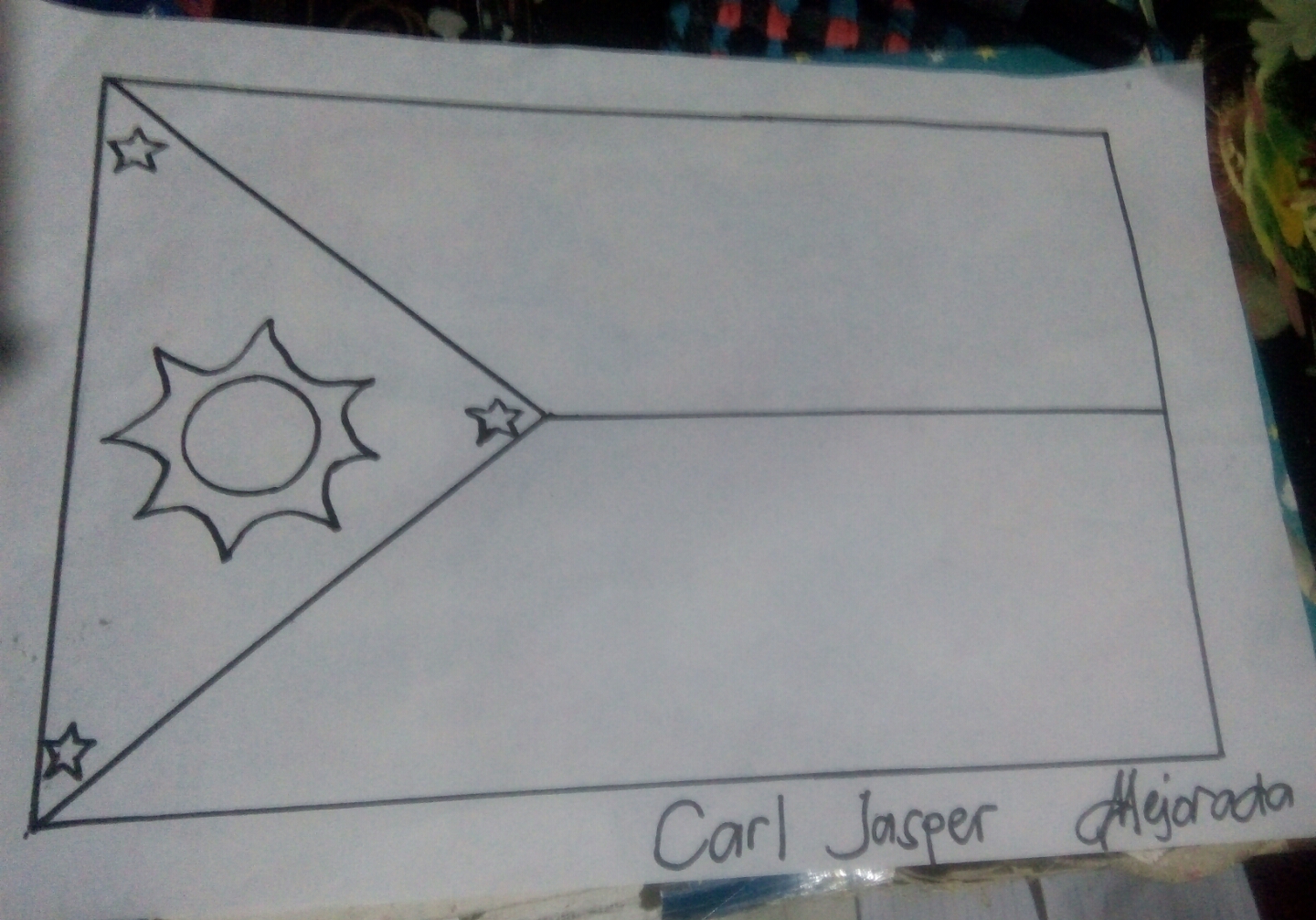 This is our Philippines flag. I draw this using pencil and trace it using a black marker.