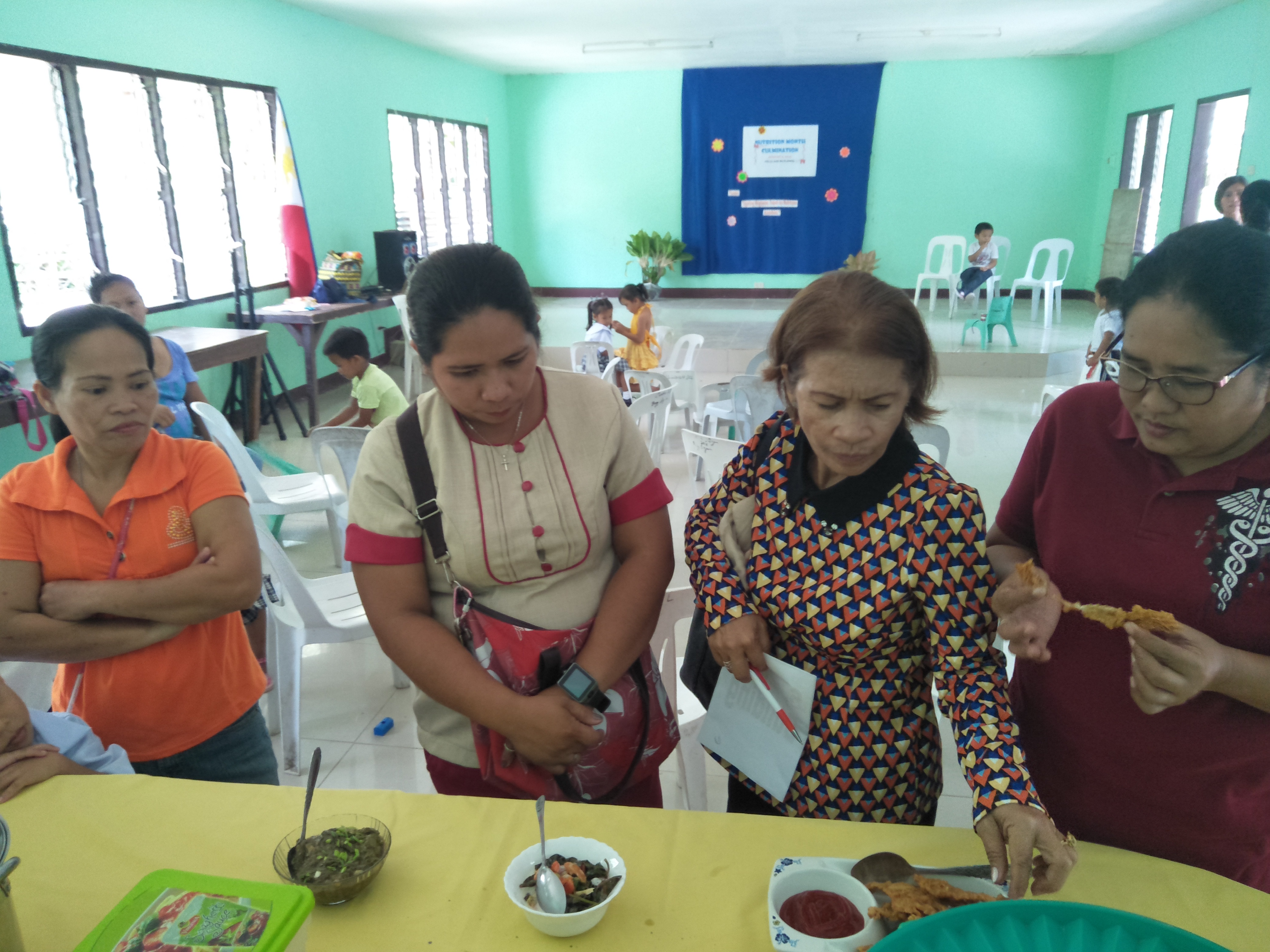 Basically there's a food contest where the main ingredients is all pure vegetables. No condiments, just a little salt. And being judged by our Barangay nurse on the right side wearing maroon shirt ang our honourable kagawad on the center.