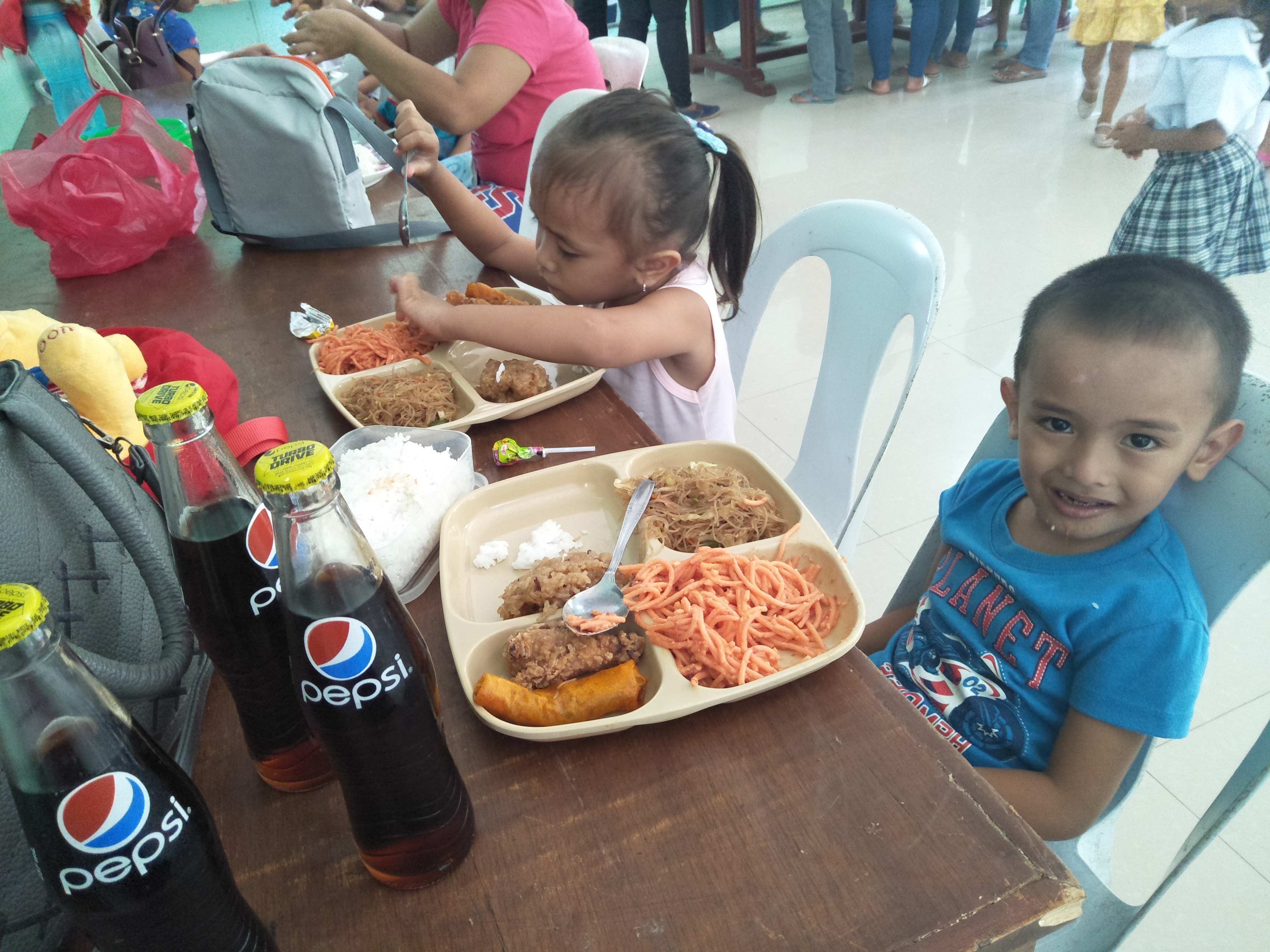 So after the food contest we eat our lunch. The food that being serve is spaghetti, fried chicken, pancit, chicken curry, biko and lumpia. Gulaman for dessert.
