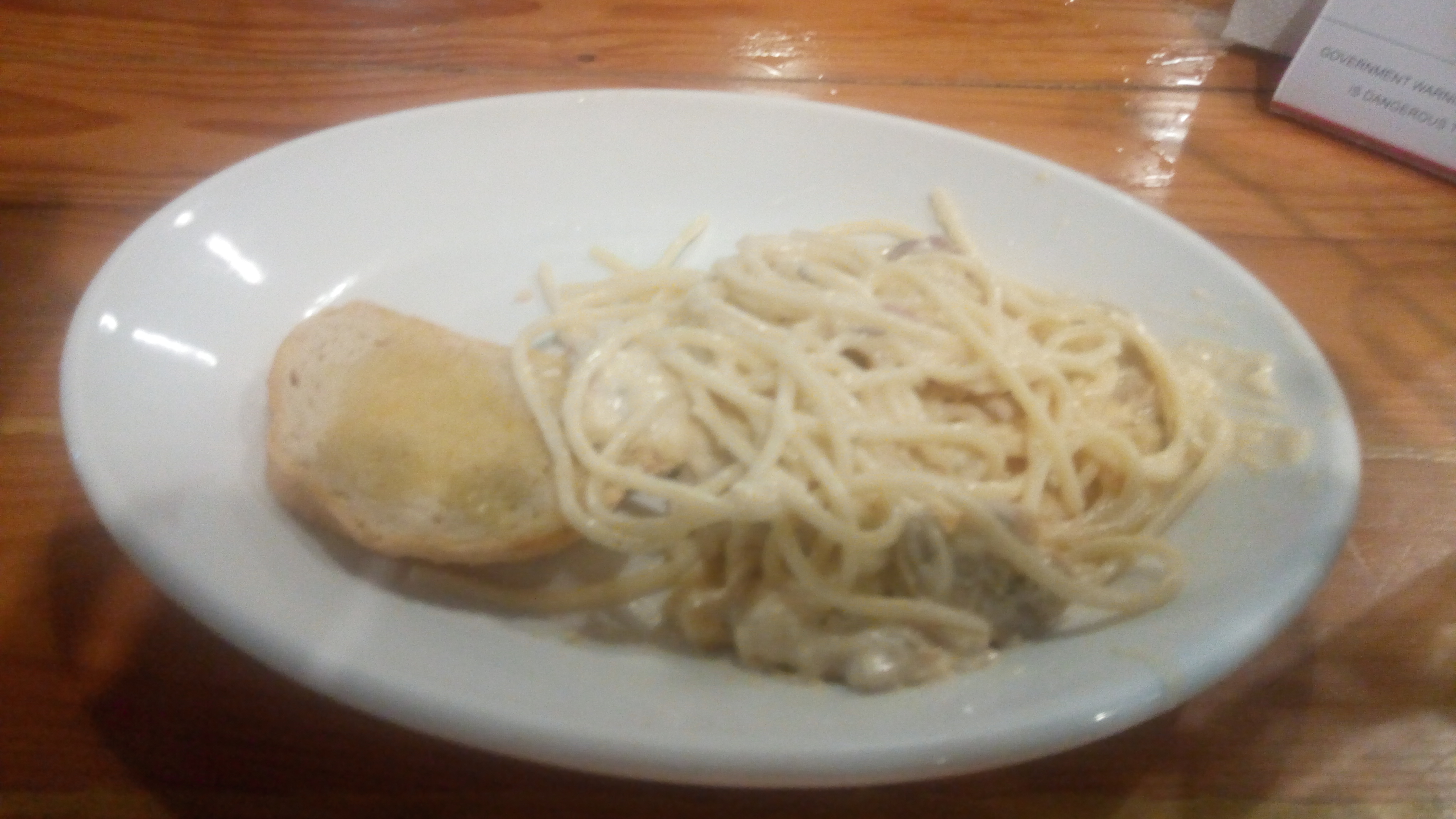 This Carbonara with small bread costs 129 pesos.