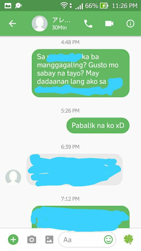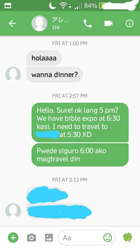 She wasn't able to read the message, so she called me asking me where I was. She and another friend were already at the restaurant; I felt bad because I was just on my way to the place where I was supposed to drop by. I told her this, and she said that it was okay to postpone; we could have dinner again next week, she said. I told her that I'd be back immediately.