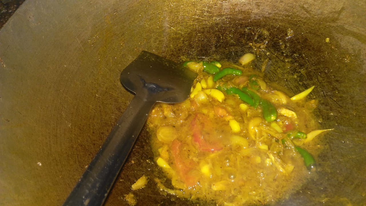 put some oil into a pan and all the ingredients except the boiled bitter guard. After 5 minutes, add the bitter guard and cook it for 10 minutes.And here your tasty and healthy recipe is ready to eat...