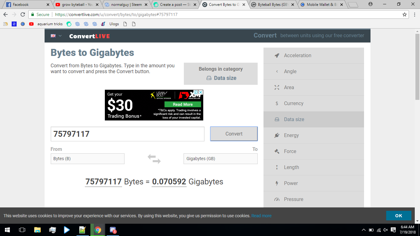 First I converted the bytes that I hold to Gigabytes click here