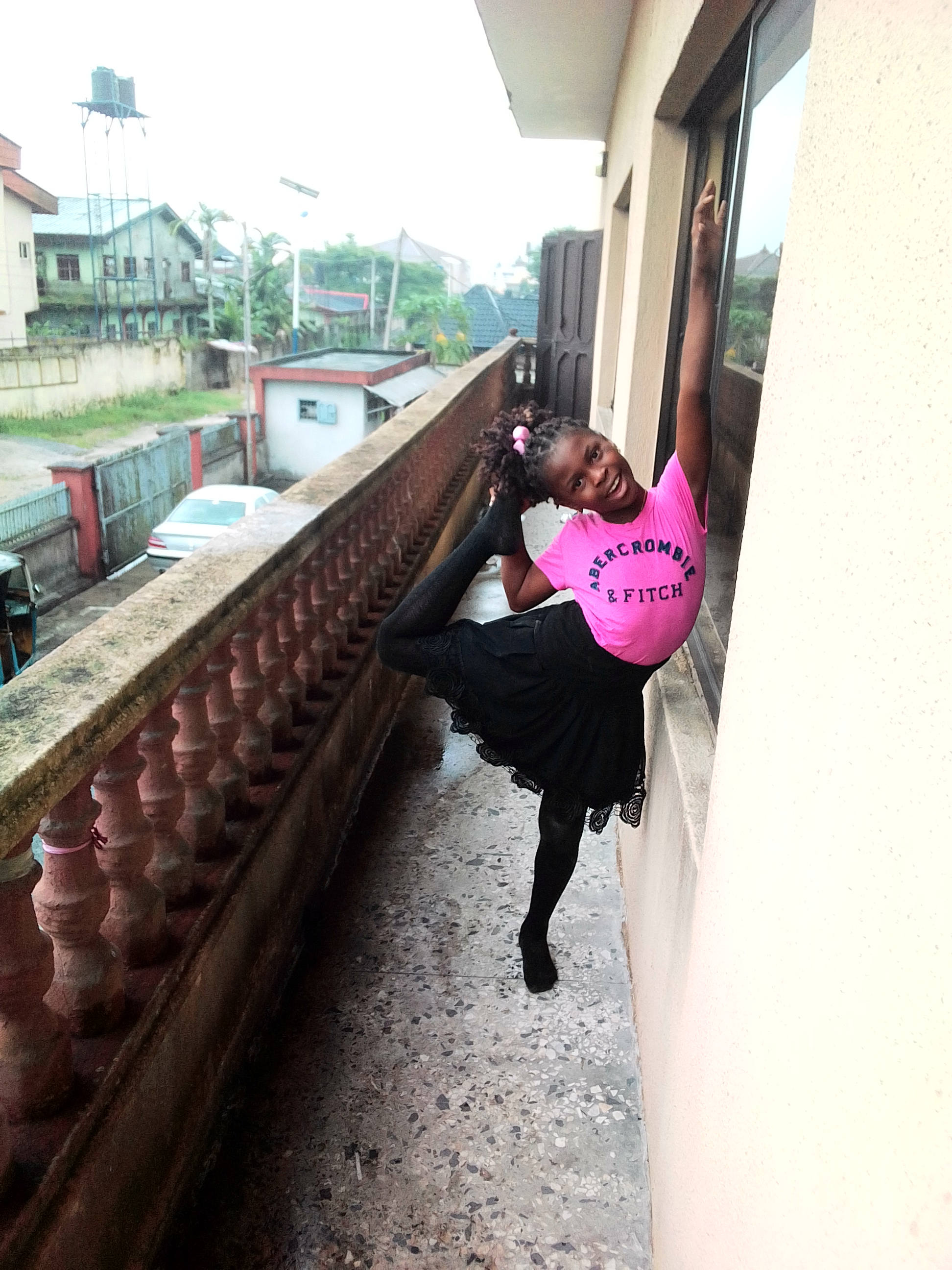 She is nine years old,when she was still a baby about 3 to 4 years old,she will always say that she will be the best ballet dancer among her per,.and L we will all laugh and tink she is just joking because she still a child talking nonsense, but as time goes on we saw that thing laugh about coming to reality. She starting chasing her dream from school and church,and by God grace she is going places.