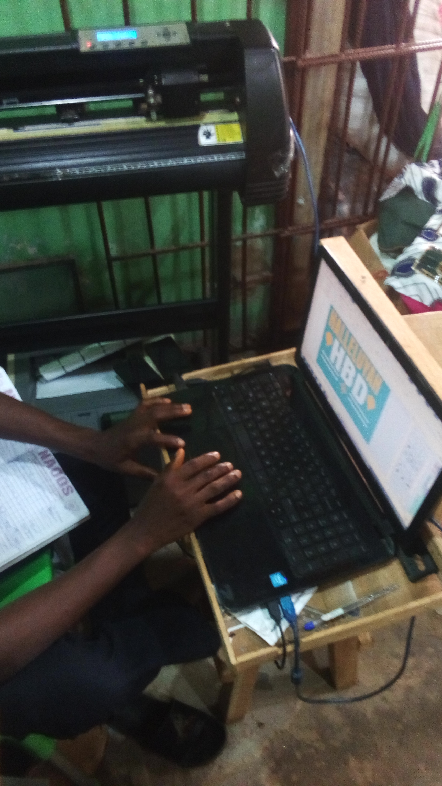 That is the graphic designer that is designing the costuming name and others. Always on laptop workung in coreldraw.