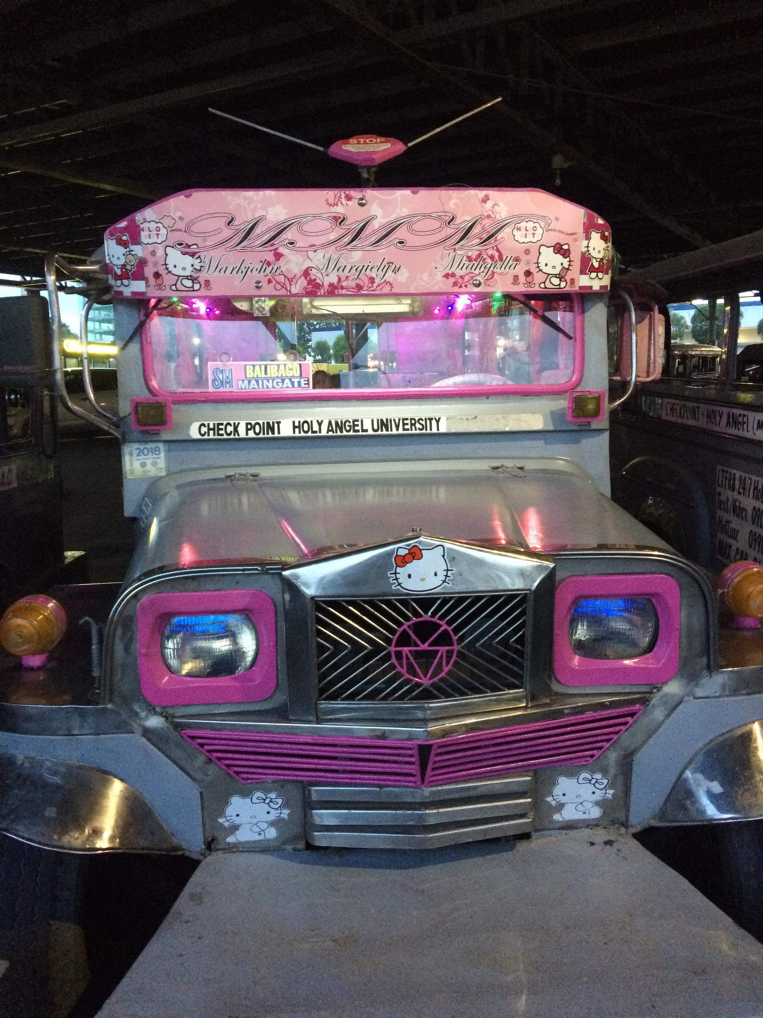 patawid kami papuntang Sm clark biglang may humintong jeep na puro hello kitty ang design hahaha nakakatawa pero hinabol ko talaga siya hanggang sa magpark siya sa terminal at ayun kinausap ko si manong driver para lang magpapicture talaga ko sa jeep niya super thank you kay manong driver at pumayag siya sabi ng mga ibang driver post ko daw sa fb at pag sumikat daw yung jeep hanapin ko daw sila pati yung may ari hahahaha 😍😍😍