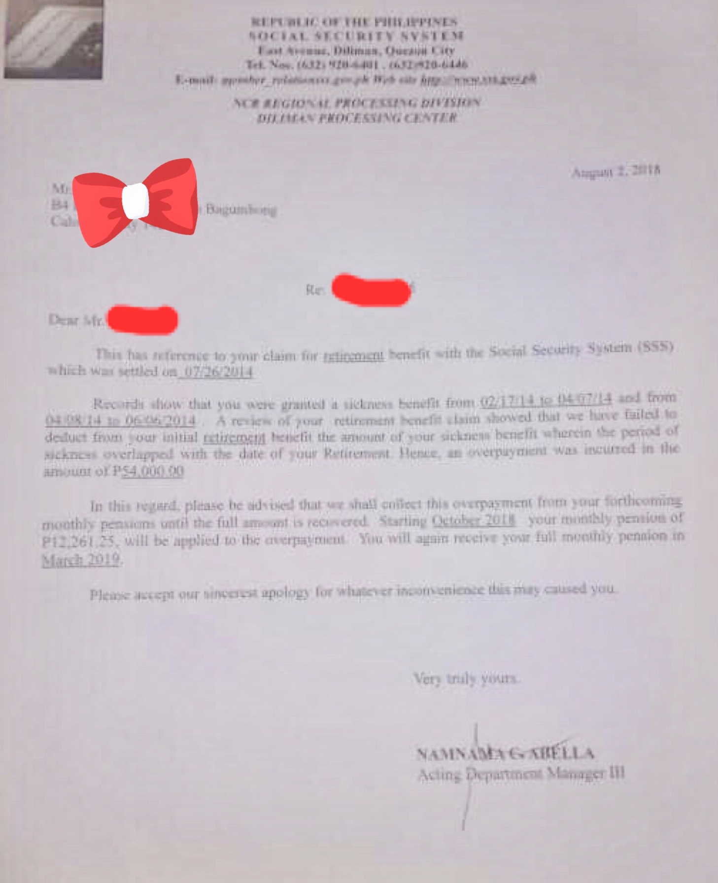 Many problems came to me this past few months. Then another bad news came. The retirement pension of my father was stopped from August 2018 to March 2019 because according to the Social Security System, they were overpaid for my father’s sickness benefits last 2014 that is why they have to deduct it from his monthly pension.