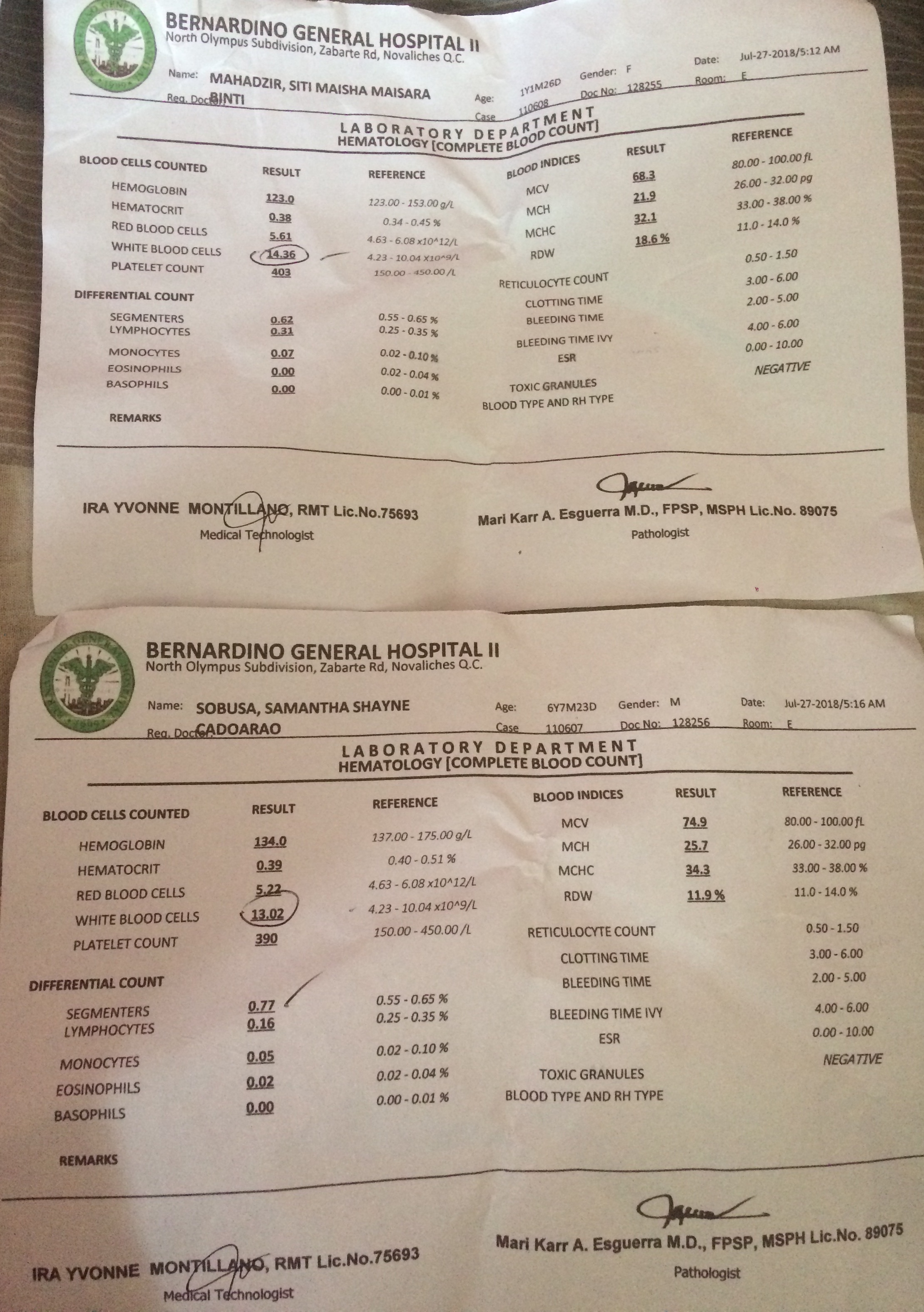 It showed that their white blood cells was high meaning they had an infection. They were given medications and the Dr. advised that if they will have a fever and the diarrhea and vomiting persists till later in the evening, I must bring them back immediately and admit.