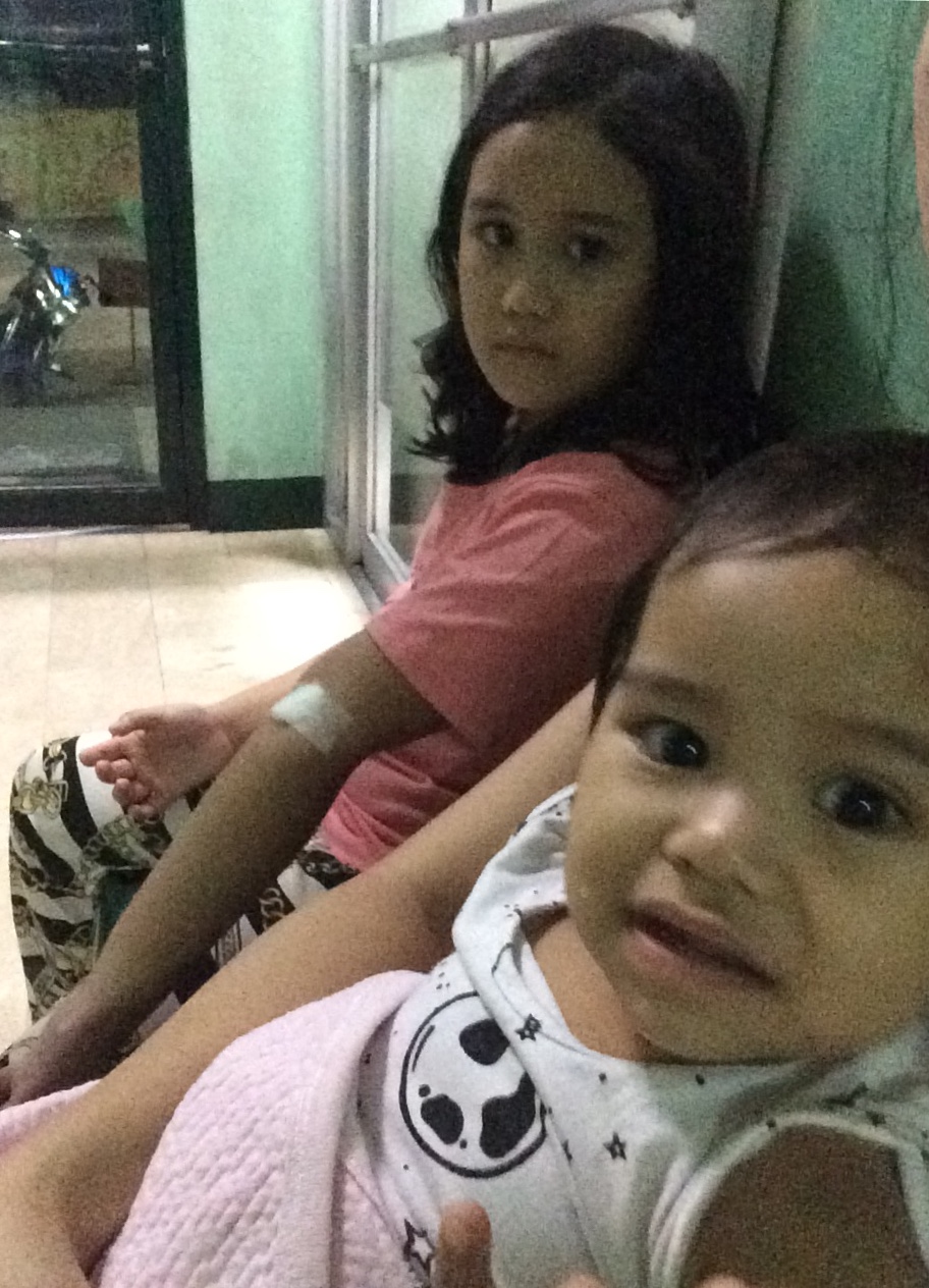 I brought my 2 daughters again to the clinic, because my baby still not really getting well and my elder daughter was almost dehydrated. Her lips are already bleeding because of wounds due to the dryness of her lips. They were given medicines again, more expenses, I spent again 4,000 php or $80.00 because she has to take them for 2 weeks.