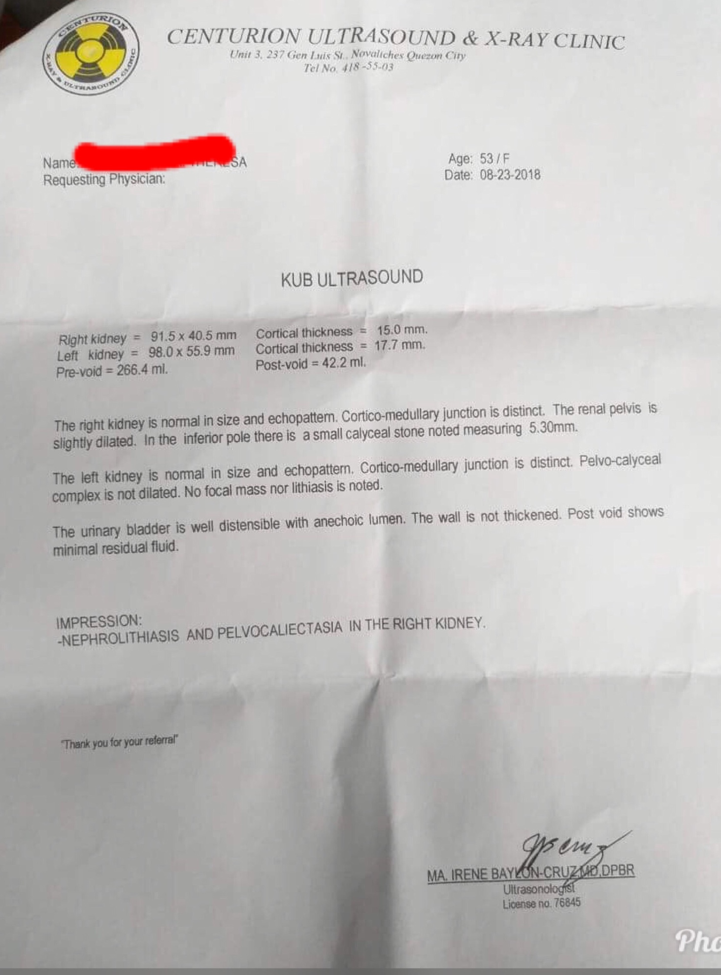 Then, as if all that I experienced is not enough, another problem came, my mom urinated with blood. She went to the hospital to consult a Dr. Some laboratory tests and ultrasound was done and the findings showed that she has a stone in her kidney. 5mm in size. She have to come back to clinic tomorrow to show to the Dr. the ultrasound result.
