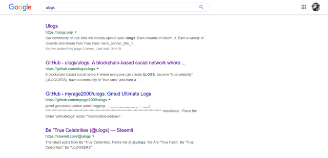 In the search engines, we have already created an entire space for "ulogs". Our domain 'ulogs.org' already appear on the first page of google for the word 'ulogs'.