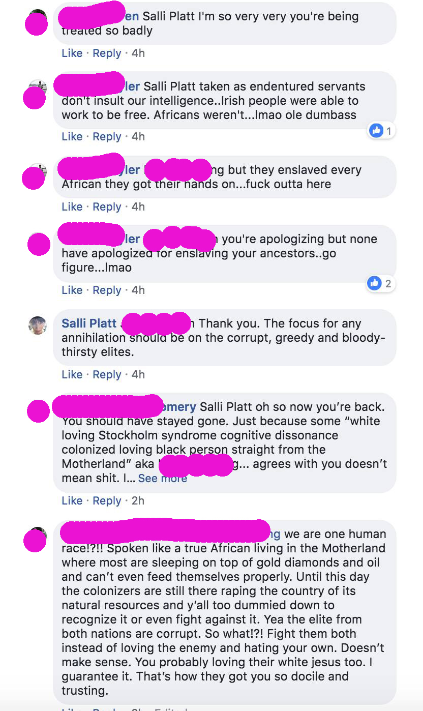 There was more to come, and this pink pig bitch was buried in an avalanche of cold, non-white cuss, saved only by the more enlightened souls who had my back for a while and acknowledged my genuinely positive purpose.
