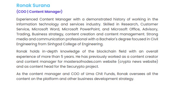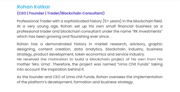 Therefore, Uma Chit funds will make it possible for you to save and borrow funds easily without having to look at the financial documentation. Also, we look forward to providing various other opportunities which will make it convenient and beneficial for our users/members to pay the weekly/monthly/yearly EMI’s with our utility token (UCF) which will indeed help increase the demand and use cases for our coin on the platform.