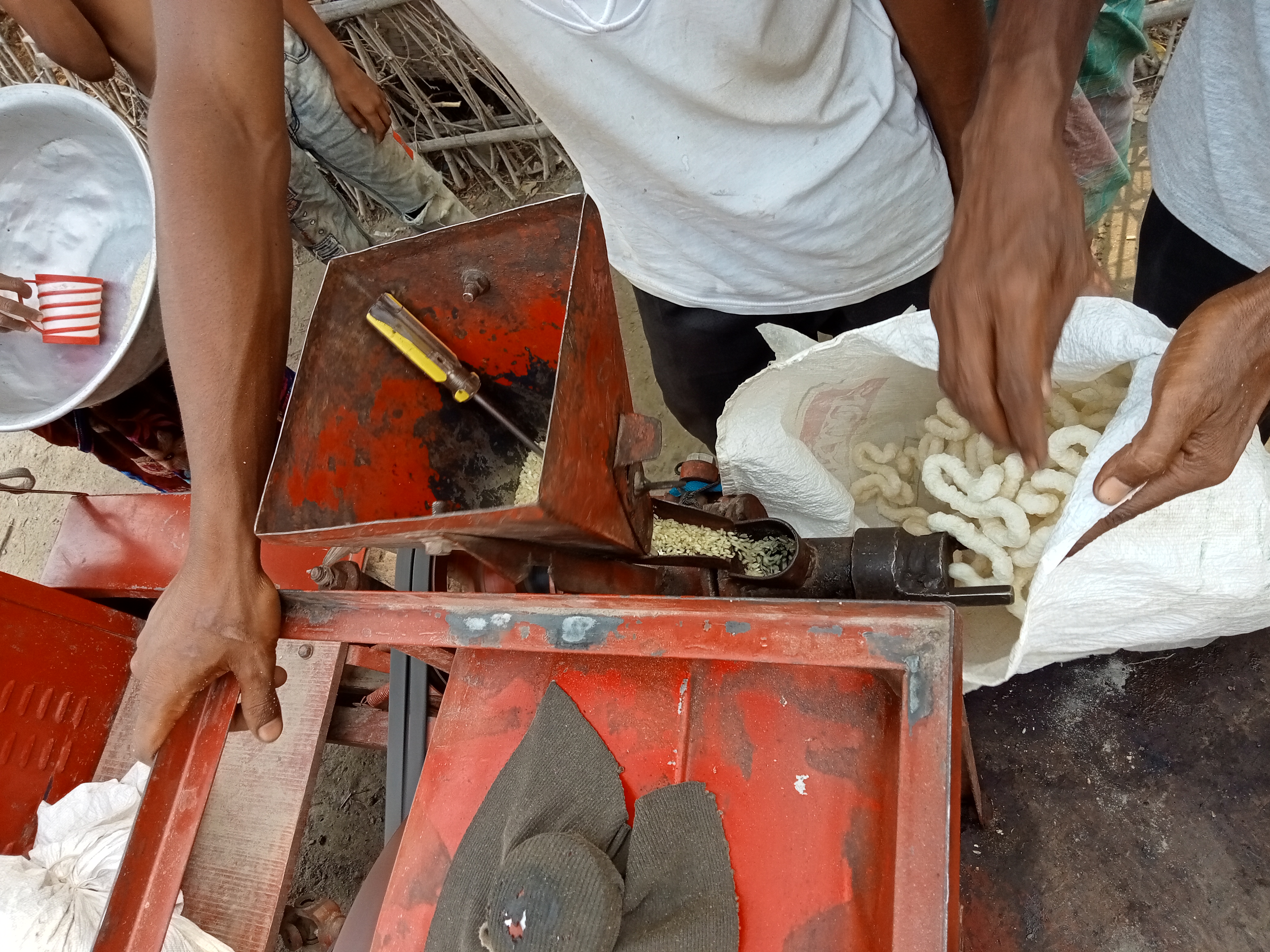 এই মুহূর্তে আপনারা যারা আমার পোস্টটি দেখছেন তারা আমার টাইটেল দেখেই হয়তো একটু অবাক হয়েছেন। আসলে আমি আজকে আপনাদের মাঝে যে পোস্টটি শেয়ার করতে যাচ্ছি সত্যি এটা হচ্ছে আমার কাছে আনকমন। আসলে আনকমন কিছু খাওয়ার অনুভূতিই আলাদা। এইতো কয়েকদিন আগে আছরের আগ মুহূর্তে দেখছি মহল্লার মধ্যে হইচোই বেধে গিয়েছে। যে চাউল দিয়ে খুরমা তৈরি করে দিচ্ছে । সত্যি বিষয়টা আমার কাছে প্রথমে অদ্ভুত লেগেছিল। আমি আবার বলছি এটা আবার সবাই কি বলছে প্রথমে আমি একটু কথাটা মাথায় নিয়ে ছিলাম না। পরবর্তীতে দেখি সবাই চাউল নিয়ে দৌড়ে যাচ্ছে এবং বস্তা ভর্তি করে কি যেন নিয়ে আসছে। তাই আমি একটু ফাঁকাই বের হয়ে দেখি অনেক মানুষের ভিড়। তবে একটা বিষয় বলে রাখি দিন দিন প্রযুক্তির ব্যবহারে কতোই না কিছু তৈরি হচ্ছে। আসলে অবাক করার বিষয় আজ মানুষ বিজ্ঞান ব্যবহার করে অনেক রকম পদ্ধতি তৈরি করেছে। যা কি না প্রথমে দেখলেই অবাক বিষয় লাগে। যাই হোক মহলের মধ্যে দেখছি অনেকেই ভাবি চাউল নিয়ে যাচ্ছে। তাই আমিও আধা কেজি চাউল একটি বাটিতে করে নিয়ে গেলাম। যে দেখতে পেলাম একটি মেশিন সেটি স্যালো মেশিন দ্বারা চলছে। স্যালো মেশিনের মধ্যে চাউল গুলো প্রথমে চিনি দিয়ে মিশিয়ে নিচ্ছে পরবর্তীতে এটি একটি নির্দিষ্ট স্থানে ঢেলে দিচ্ছে। এবং মেশিনের মধ্য দিয়ে দেখতেছি কেমন যেন একটা বের হয়ে আসছে। আধা কেজি চাউল সাথে তারা একটু চিনি দিচ্ছে এবং আনকমন কিছু তৈরি করে দিচ্ছে। আসলে এটার যে কি নাম আমি নিজেও জানিনা। তবে আনকমন জিনিসটা দেখতে পেয়ে খাওয়ার খুব আগ্রহী হলো। তাই আধা কেজি চাউলের সাথে ২০ টা টাকা নিয়ে গেলাম পরবর্তীতে দেখি আমাকে বলল বাসা থেকে একটা বস্তা নিয়ে আসো। এরপরে আবার বাসায় এসে বাস্তা নিয়ে গেলাম। বাস্তা নিয়ে যাওয়ার পরে আমি যে আধা কেজি চাউল নিয়ে গেছিলাম ওইটাই দেখলাম তারা চিনি মিশিয়ে একটু মিষ্টি করে নিল।এরপরে তাদের মেশিনের হপারের মধ্যে দিয়ে দিলো। এরপরে দেখতে ছিলাম দূরের মতো লম্বা হয়ে এই চাউল মিশানো চিনি খুব সুন্দর ভাবে নকশা হয়ে বেরিয়ে আসছে এবং এগুলো খেতে খুবই মচমচে।