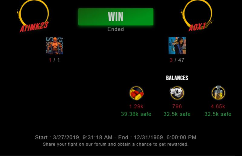 Check my latest fight ! atimk23 vs a0x1a0x1 (50)in #undefined • 7 years ago #drugwars-fight #gaming #fight #dw