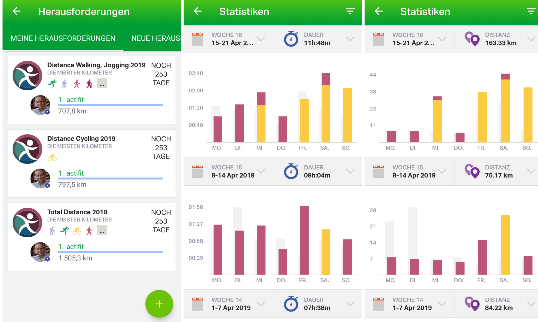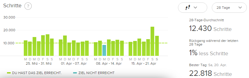 The above data include all activities tracked by Endomondo, a GPS-based sports-tracker App. Not included are additional steps tracked by the "actifit fitness tracker App" like daily activity, house chores, moving around office etc.