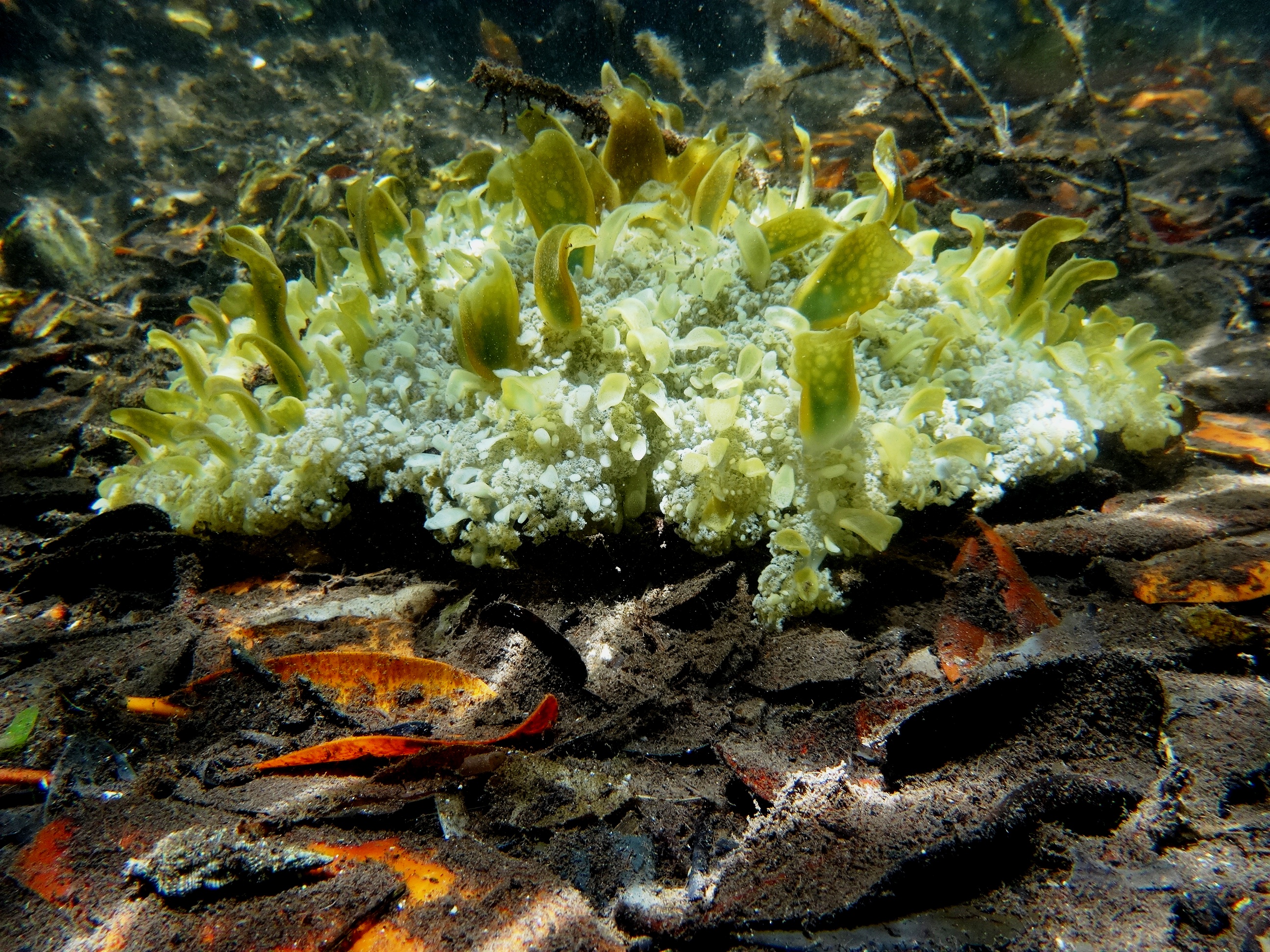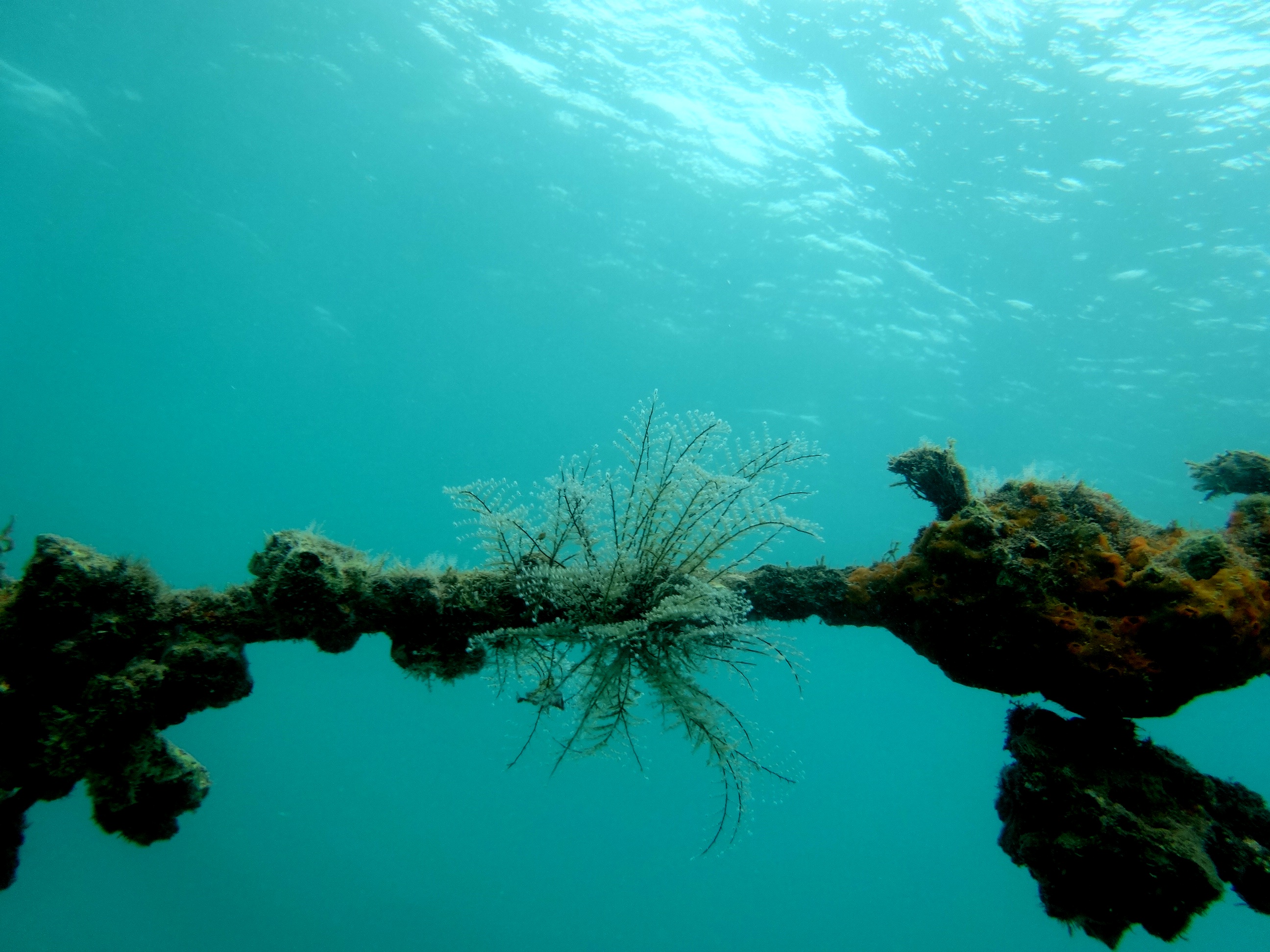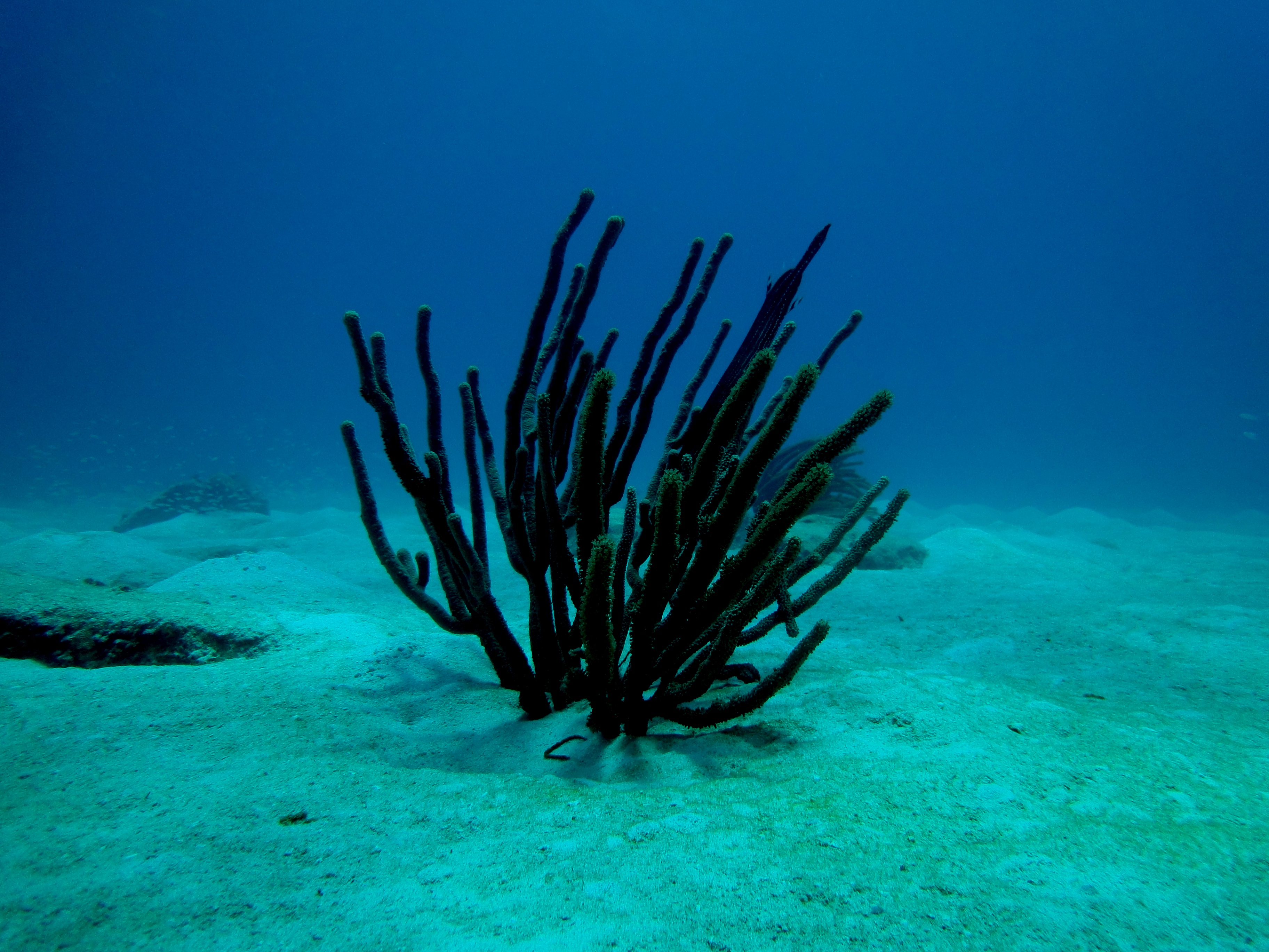 Quiero cerrar esta publicación haciendo mención a un octocoral de particular interés en Venezuela, aparentemente de la especie Xenia membranacea, original de Indonesia, que fue introducido en el oriente del país y que está invadiendo peligrosamente nuestros arrecifes naturales. El origen de la invasión parece apuntar a su liberación en aguas venezolanas por algún aficionado a la acuariofilia, quien pudo obtenerlo comercialmente. Este hallazgo fue publicado por Ruiz-Allais et al. (2014) como el primer informe de un coral blando invasor de la familia Xeniidae y la primera vez que experimenta expansión más allá de la región del Indo-Pacífico. En la fotografía que muestro a continuación aparece un ejemplar que observé a unos 10 kilómetro del sitio original de invasión.
