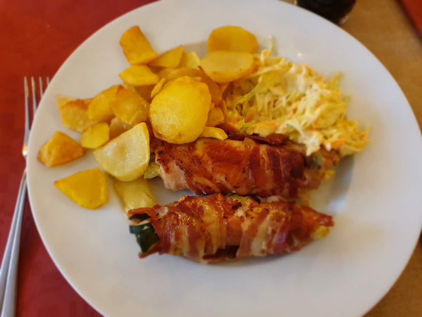 Grilled chicken fillets rolled with bacon and stuffed with zucchini, was my choice the other day when I was in the restaurant with my colleagues.