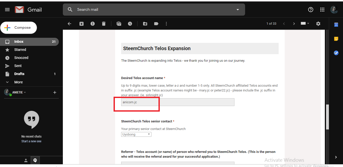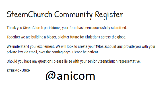 MY STEEMCHURCH TELOS VILLAGE REGISTRATION