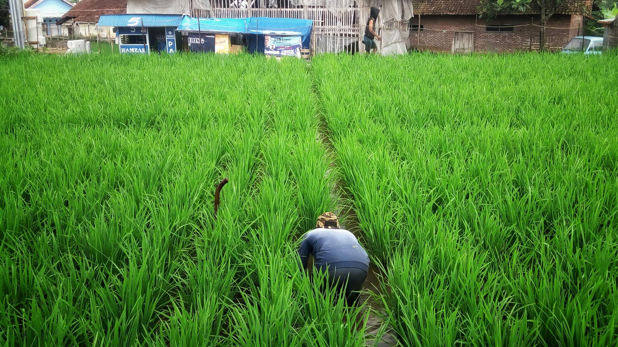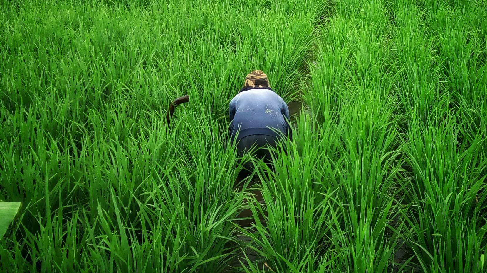 Farmers increase the flow of air in the middle of green rice, very beautiful when the eyes look. But what comes to your heart when you see this photo?