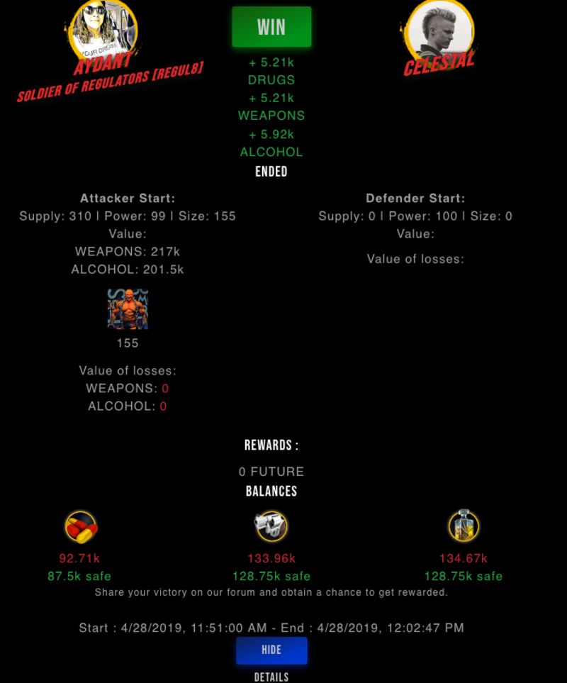 Congratulations @aydant ! Your fight received an upvote of 2.5% from the King Dealer as incentive for your activity and as a gratitude for your support to the game.