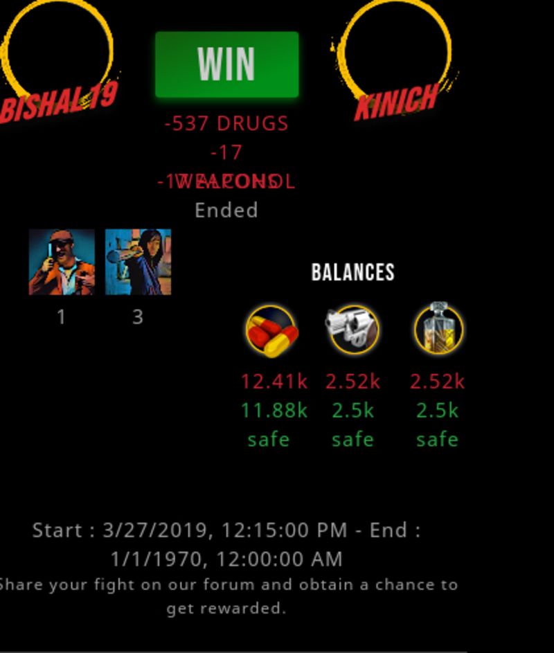 Check my latest fight ! bishal19 vs kinichbishal19 (31)in #undefined • 7 years ago #drugwars-fight #gaming #fight #dw