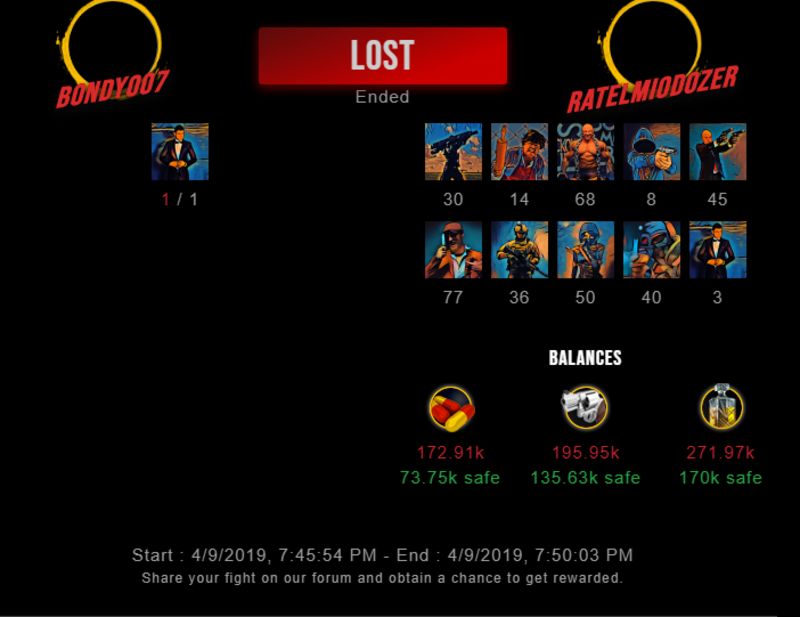 Check my latest fight ! bondy007 vs ratelmiodozerbondy007 (50)in #undefined • 7 years ago #drugwars-fight #gaming #fight #dw