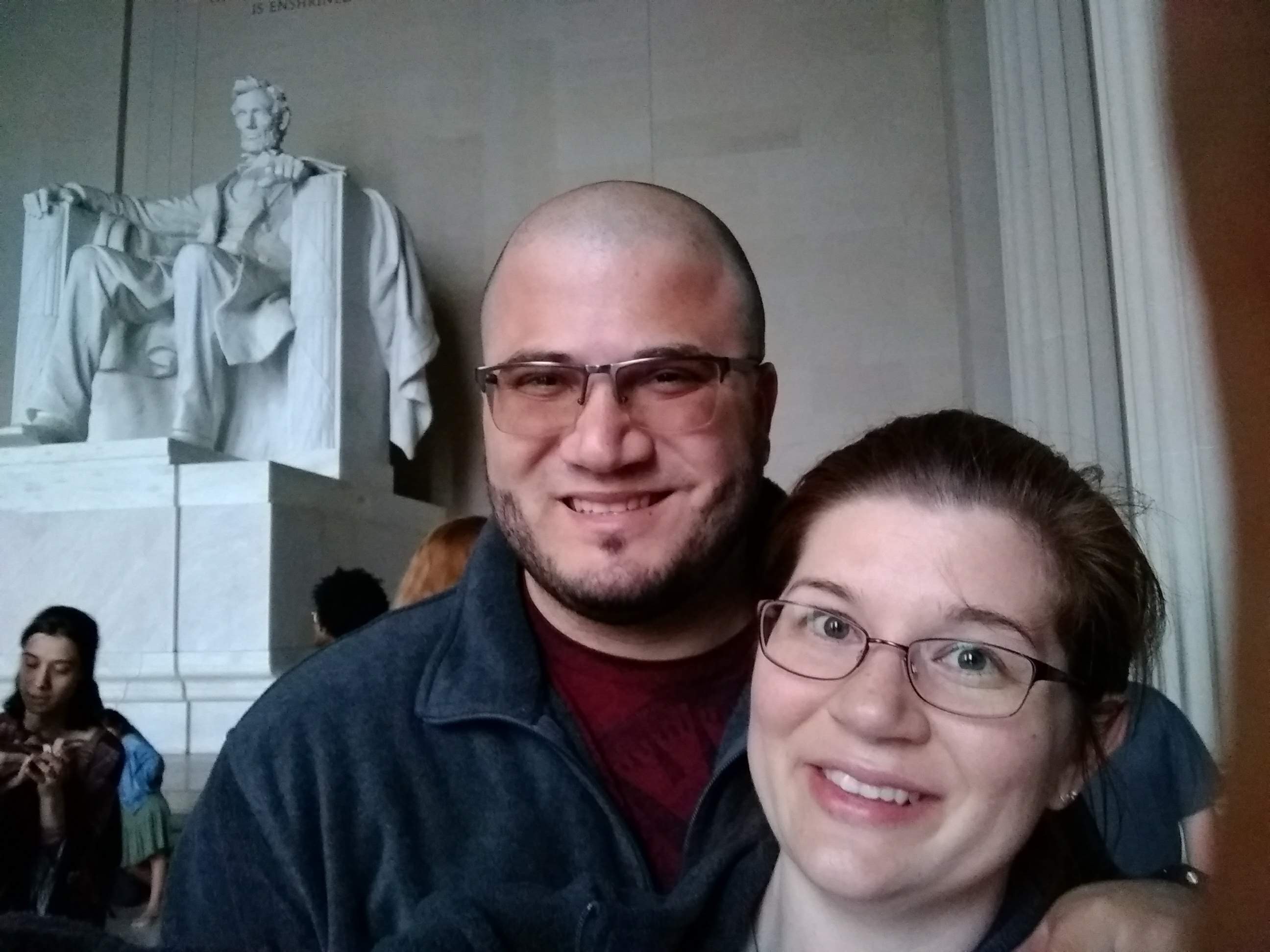 To get to the Lincoln Memorial, you have to walk up lots and lots of stairs, unless you take the elevators which we did not know about until after we trekked all the way up them!