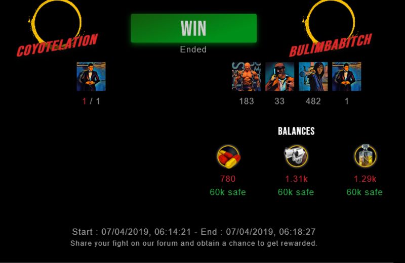 Check my latest fight ! coyotelation vs bulimbabitchbulimbabitch (26)in #undefined • 7 years ago #drugwars-fight #gaming #fight #dw