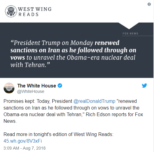 The stiff economic sanctions ratchet up pressure on the Islamic Republic despite statements of deep dismay from European allies, three months after Mr Trump pulled the US out of the international accord limiting Iran’s nuclear activities.