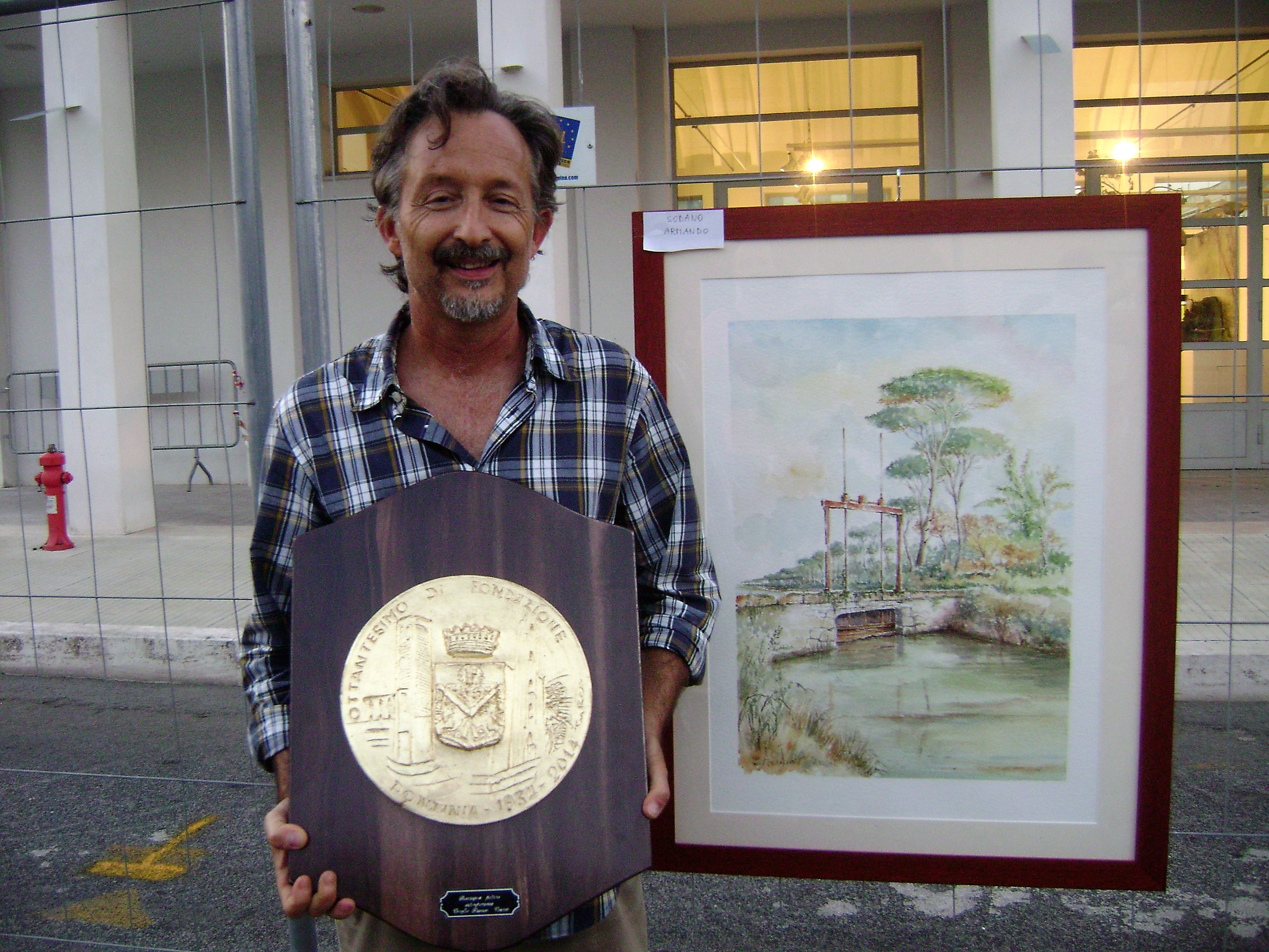 In this photo, Armando won a prize for participation in a live painting competition that span 8 hours. His artwork (which you can see below) is now owned by the bank who sponsored the competition, and he was also rewarded with 700 Euros for placing second in the competition :) Armando also won the Special Critics Award for this beautiful piece below: