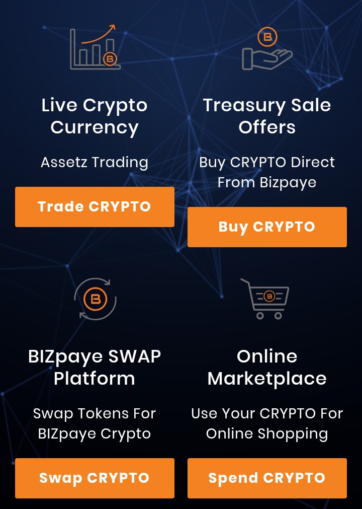 (https://www.bizpayecrypto.io//) and the already instituted and growing BIZpaye ecosystem.