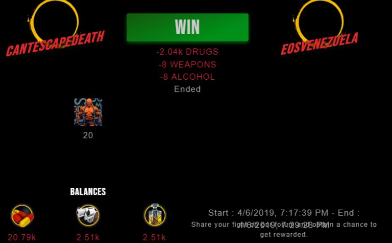 Check my latest fight ! cantescapedeath vs eosvenezuelacantescapedeath (35)in #undefined • 7 years ago #drugwars-fight #gaming #fight #dw