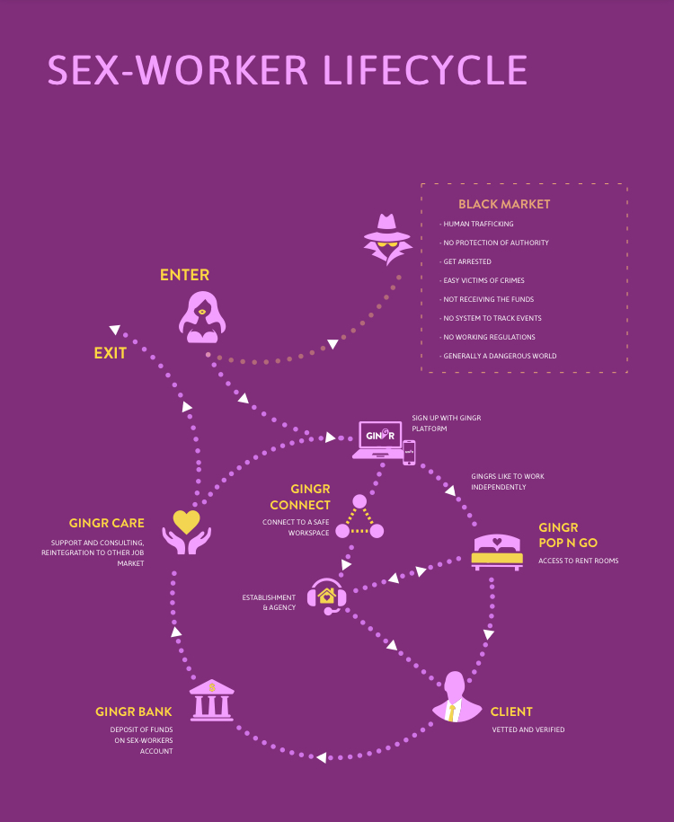 Bearing these set-backs in mind the a Switzerland Stock Company Gingr Company based in Badenerstrasse 809 in 8048 Zürich, Switzerland sort to find better solutions towards such hurdles facing the Prostitution Industry. As a Fintech Company founded in 2016 that specializes in the prostitution business has decided to create a legalized online booking ecosystem for sex worker on the cloud. Salvaging the many advantages of the nascent blockchain technology such as decentralization, smart contracts, tokenization among many others. The Company aims to offer an all-round digital communications Solution.
